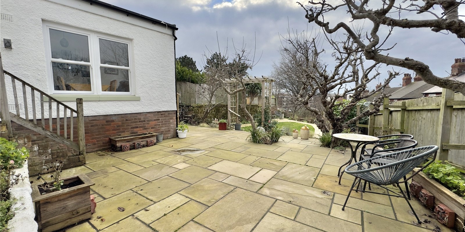 Outside, you maximise on being in an elevated position. Steps lead to the garden offering a private haven, ideal for alfresco dining, keen gardeners, or children at play, a space to relax, entertain, and unwind.