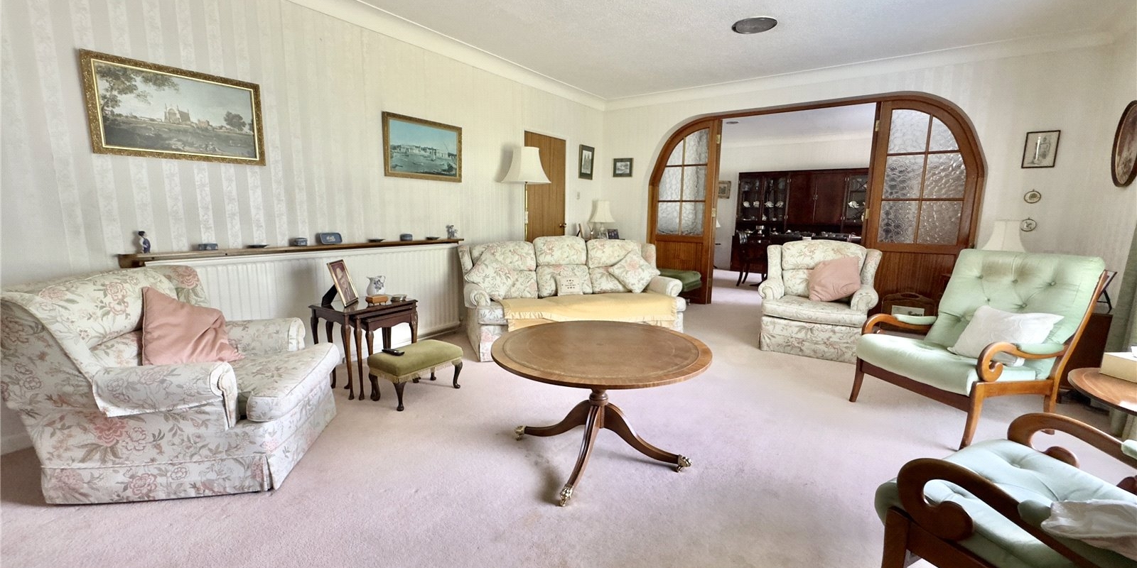 Situated in a quiet cul de sac location, this home is nestled in the corner and benefits from a fabulous, private garden and double garage. The home currently offers entrance porch into hallway with cloakroom and separate w.c. The large living room and dining room, span the back of the bungalow and are currently separated by double internal doors. From the dining room there is access to the sun room, overlooking the garden. The kitchen diner then leads to a large utility room and there is further access to the garden from the side door, onto the pathway.