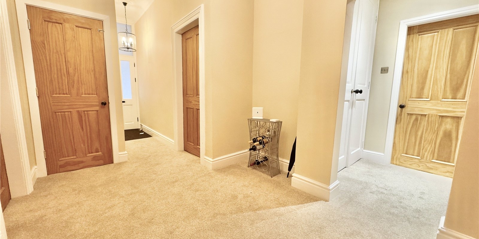 Accessed via a staircase to the side of the building, a private entrance opens into a spacious and welcoming hallway that provides a seamless flow to all principal rooms, enhancing the sense of space and privacy.