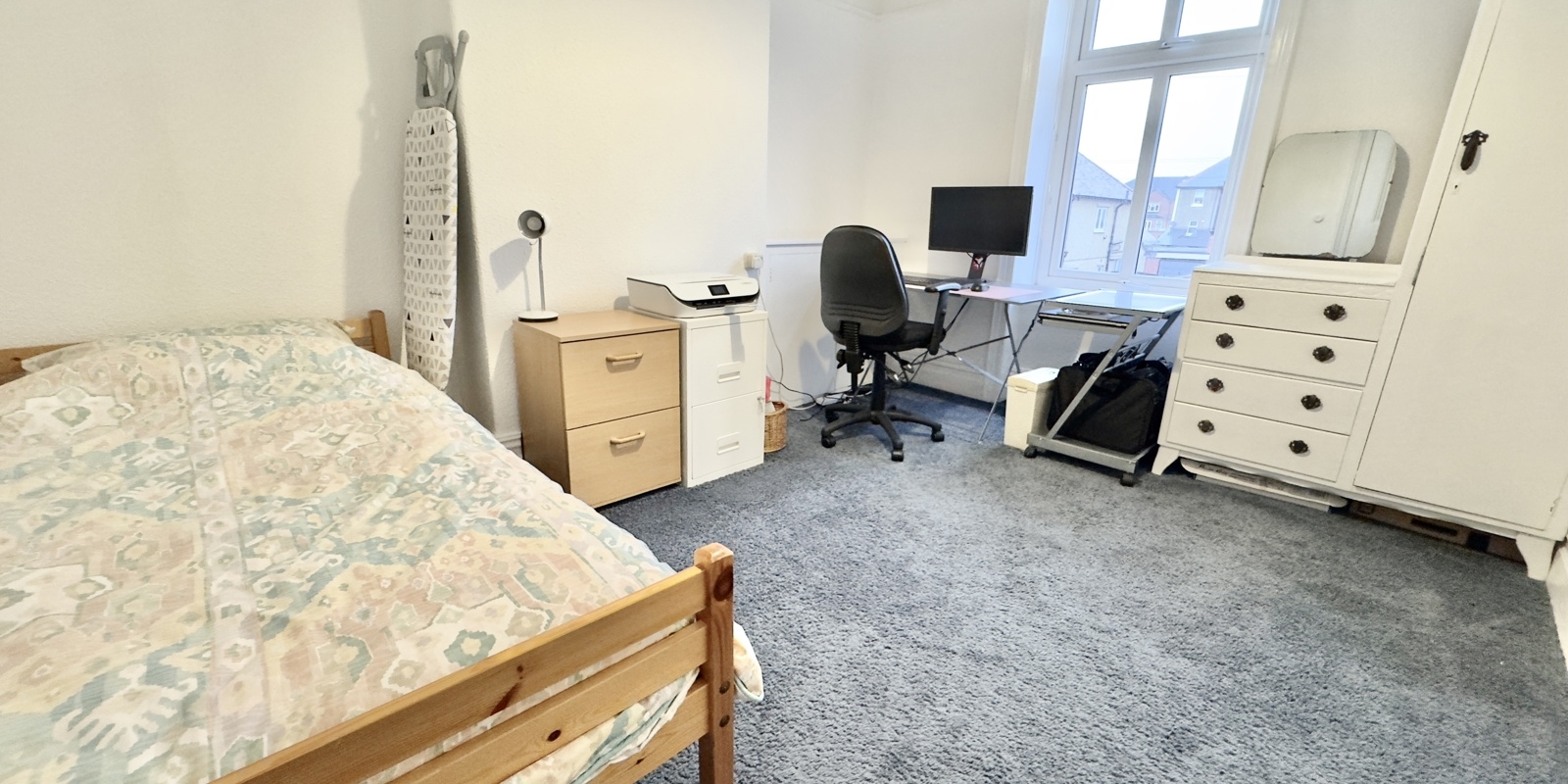 Accessed via an external staircase leading to a private vestibule and welcoming hallway, the flexible accommodation comprises three generous reception rooms, one of which is currently utilised as a bedroom, providing adaptable living space to suit modern family life. There is a breakfast kitchen, bathroom and separate WC completing the first floor. To the upper level there are two well-proportioned double bedrooms, including a particularly spacious Master bedroom with an interconnecting store room, offering excellent potential to create an en-suite bathroom or dressing room, along with a second bathroom serving the floor.