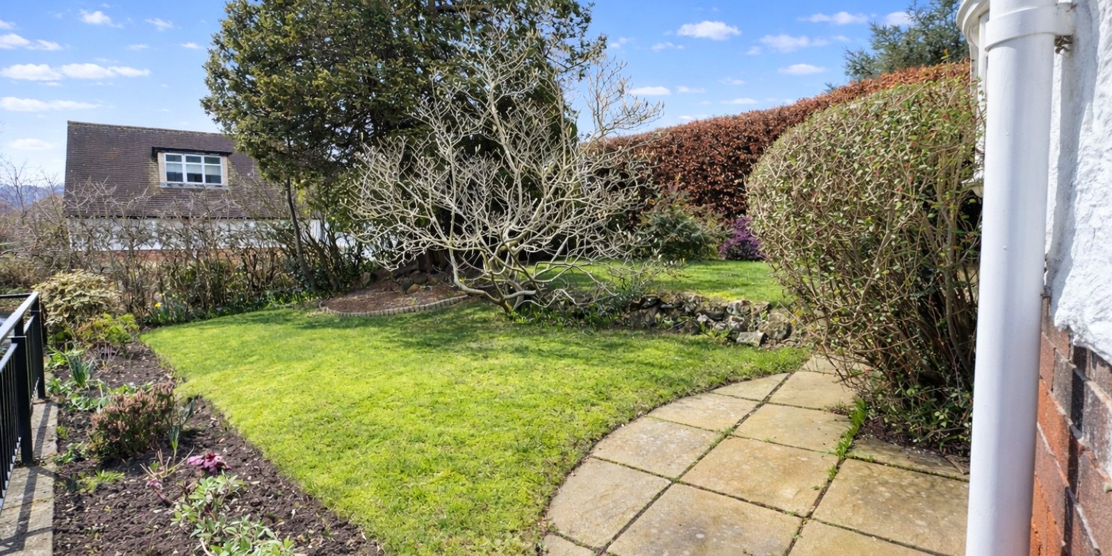 Outside, the home is embraced by substantial front and rear gardens, providing plenty of space to relax, garden or enjoy time with family and friends. A sizeable driveway and garage add further practicality, with ample off-road parking and useful storage.