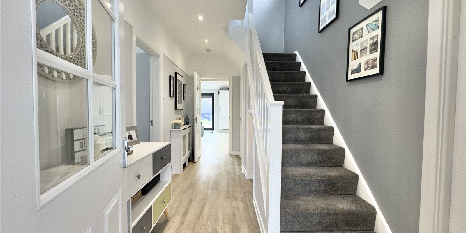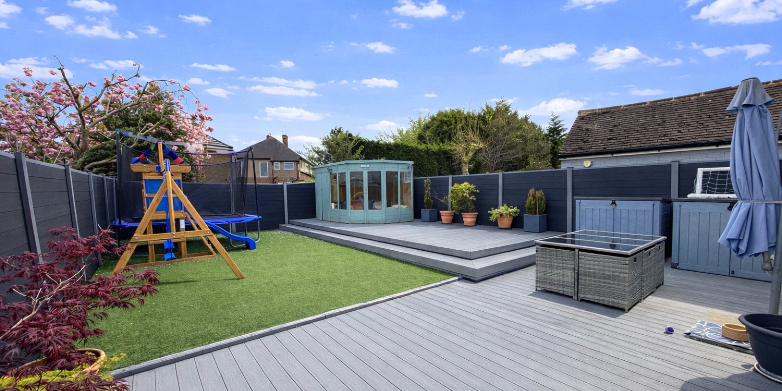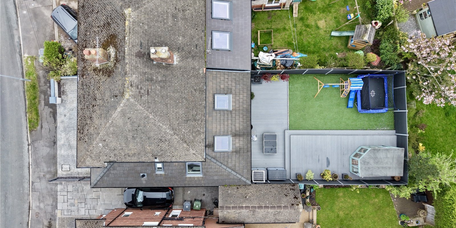 Externally, the landscaped rear garden offers a low-maintenance mix of patio and lawn, perfect for relaxing, family time, or entertaining.