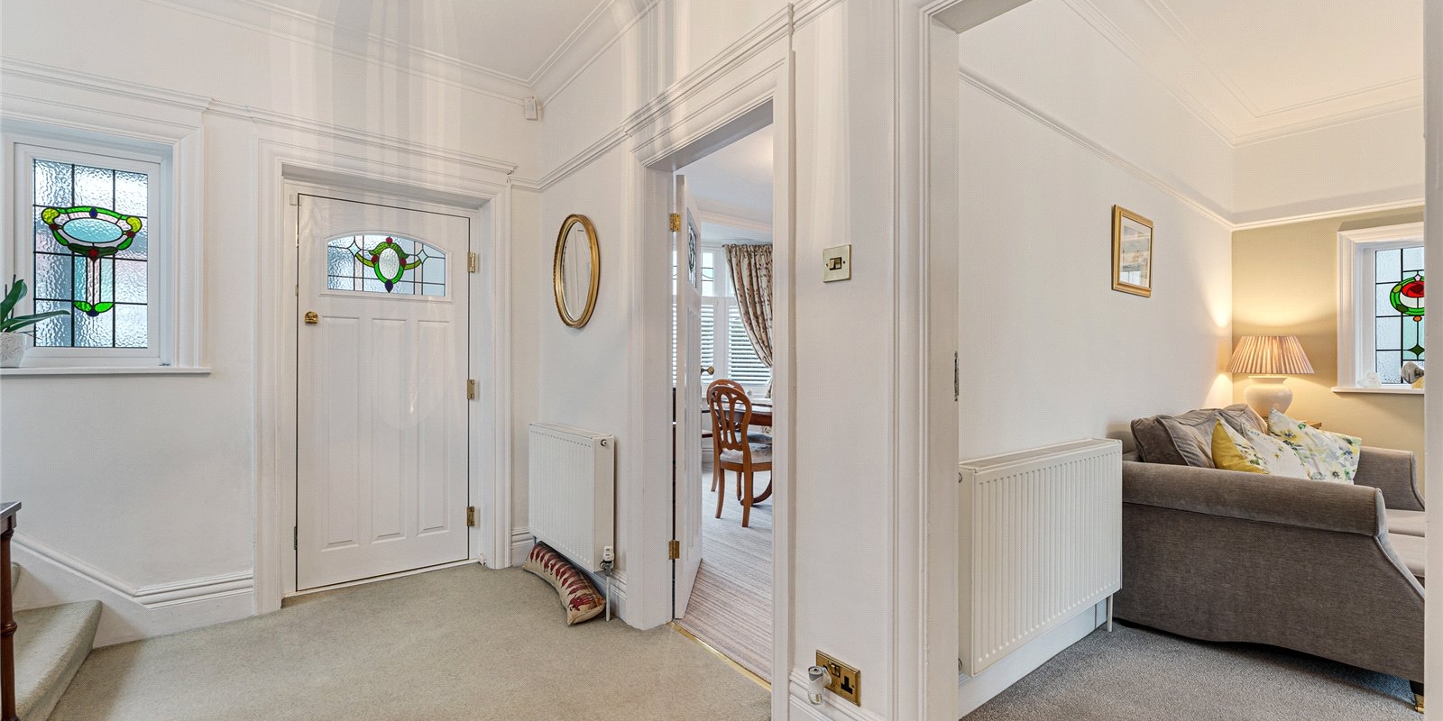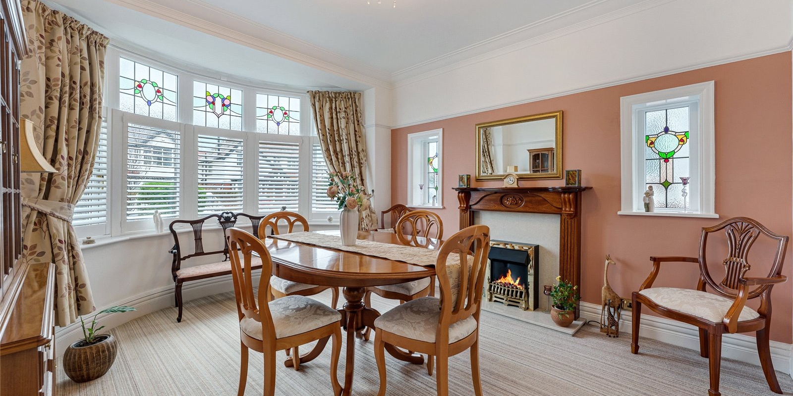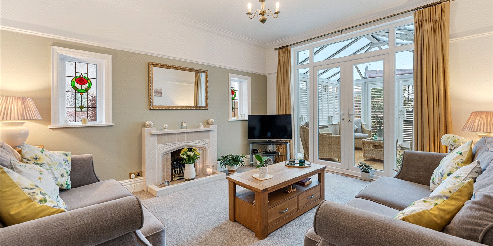 To the front, the spacious bay-fronted reception room—currently used as a formal dining space—features a stunning fireplace, offering an ideal setting for entertaining. A second, equally spacious reception room provides a relaxing lounge area, while to the rear, a sun-catching conservatory opens out to the landscaped garden, creating a tranquil retreat throughout the seasons.