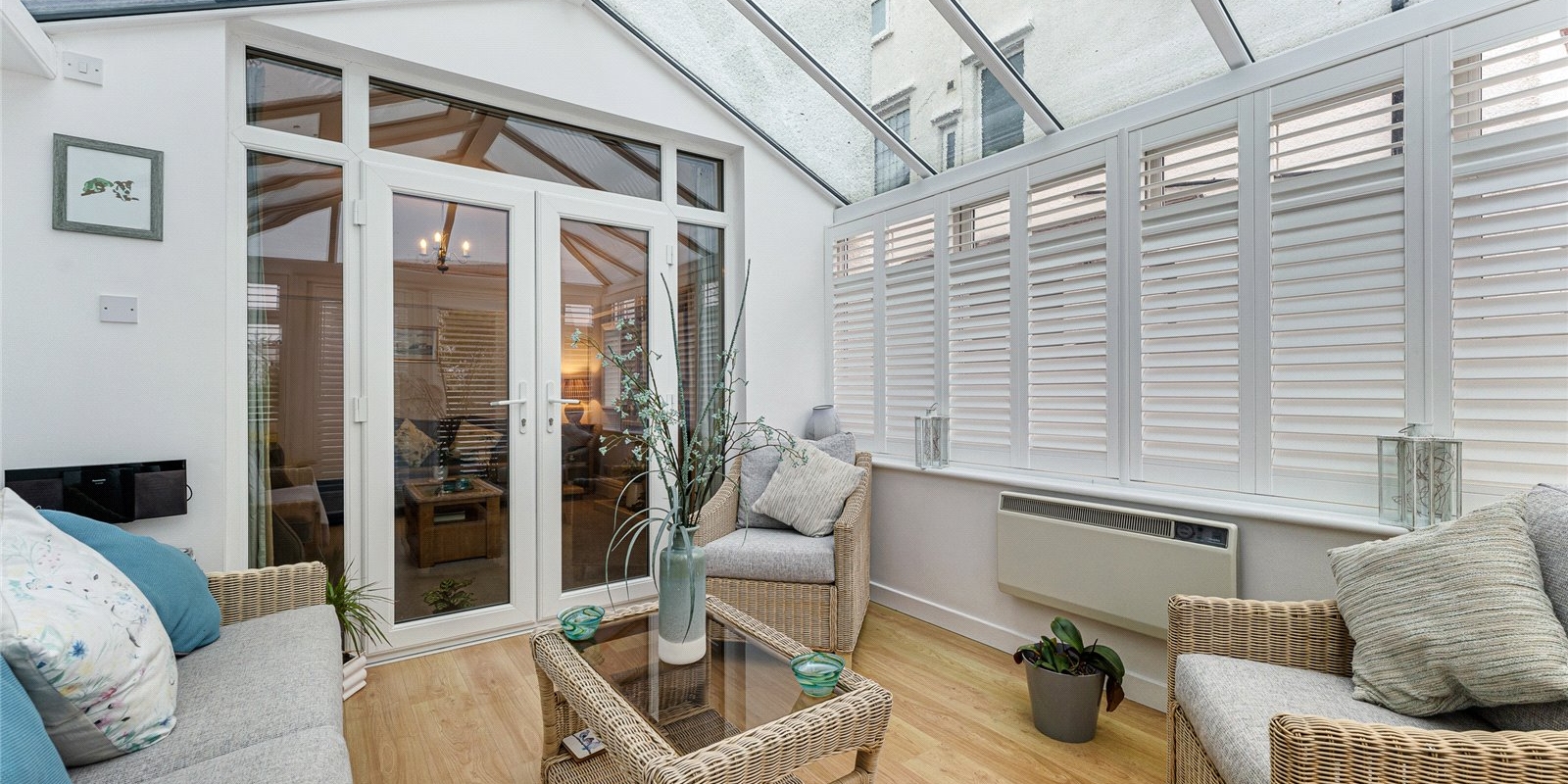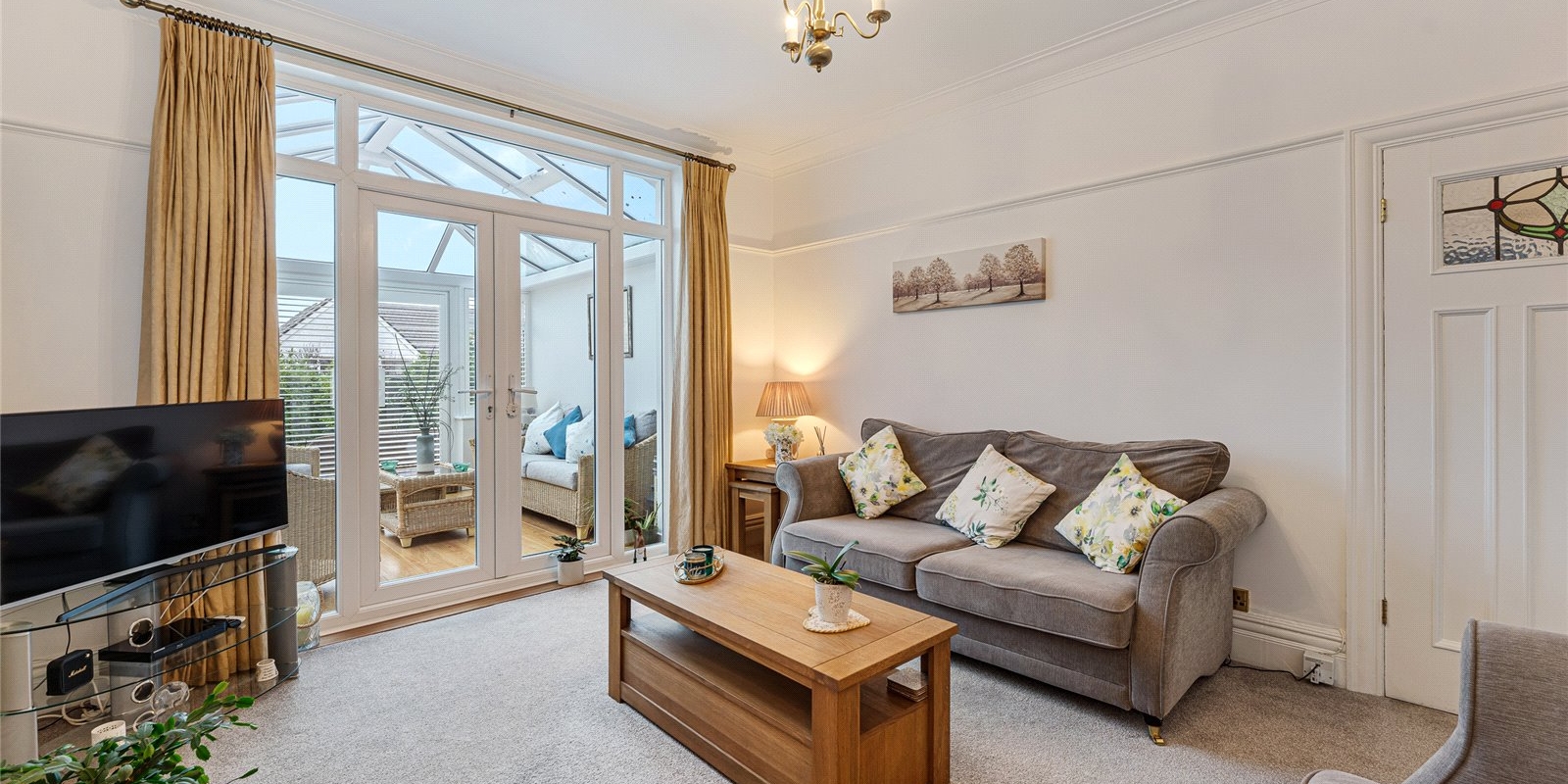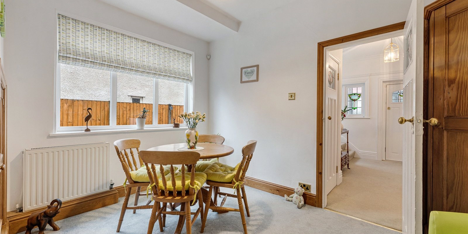 To the front, the spacious bay-fronted reception room—currently used as a formal dining space—features a stunning fireplace, offering an ideal setting for entertaining. A second, equally spacious reception room provides a relaxing lounge area, while to the rear, a sun-catching conservatory opens out to the landscaped garden, creating a tranquil retreat throughout the seasons.