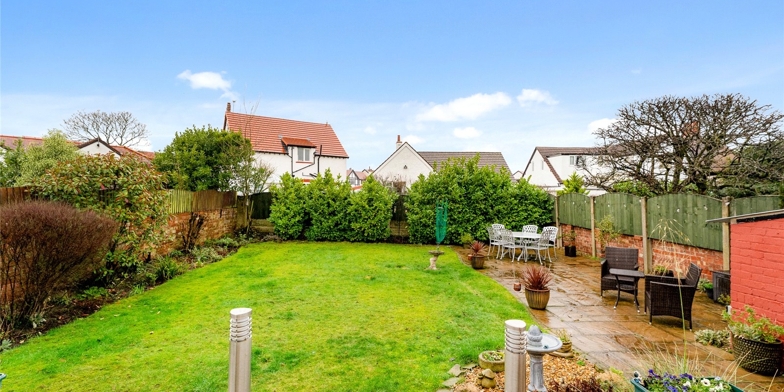 The rear garden is a true highlight—landscaped, well-established, and benefitting from daylong sun, it provides both privacy and a picturesque backdrop for outdoor living.
