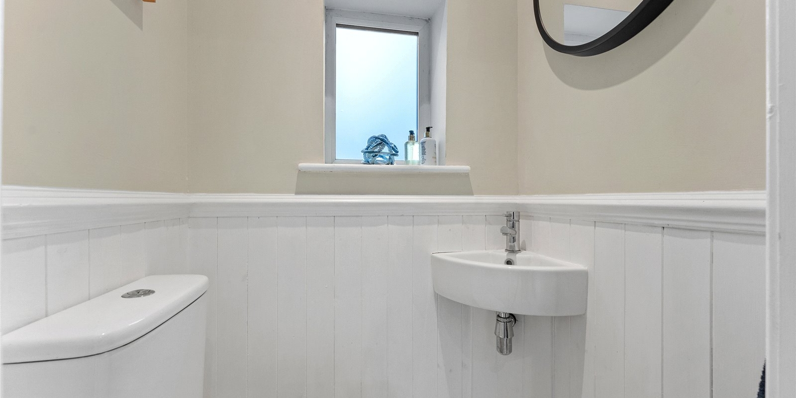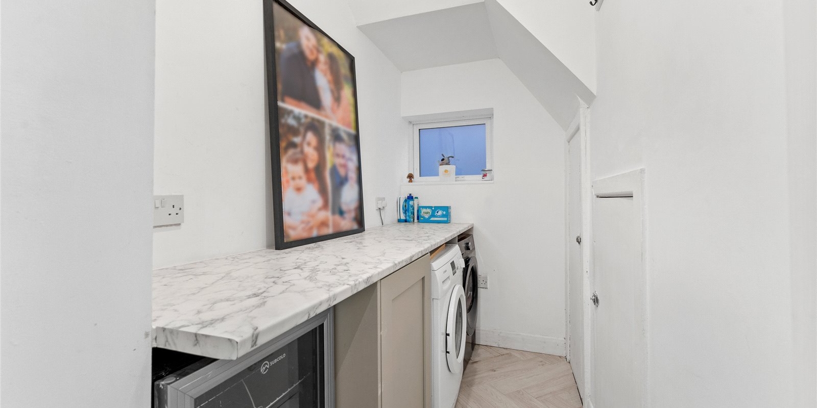 A useful utility room sits just off the main living space, adding practicality without compromising on style.