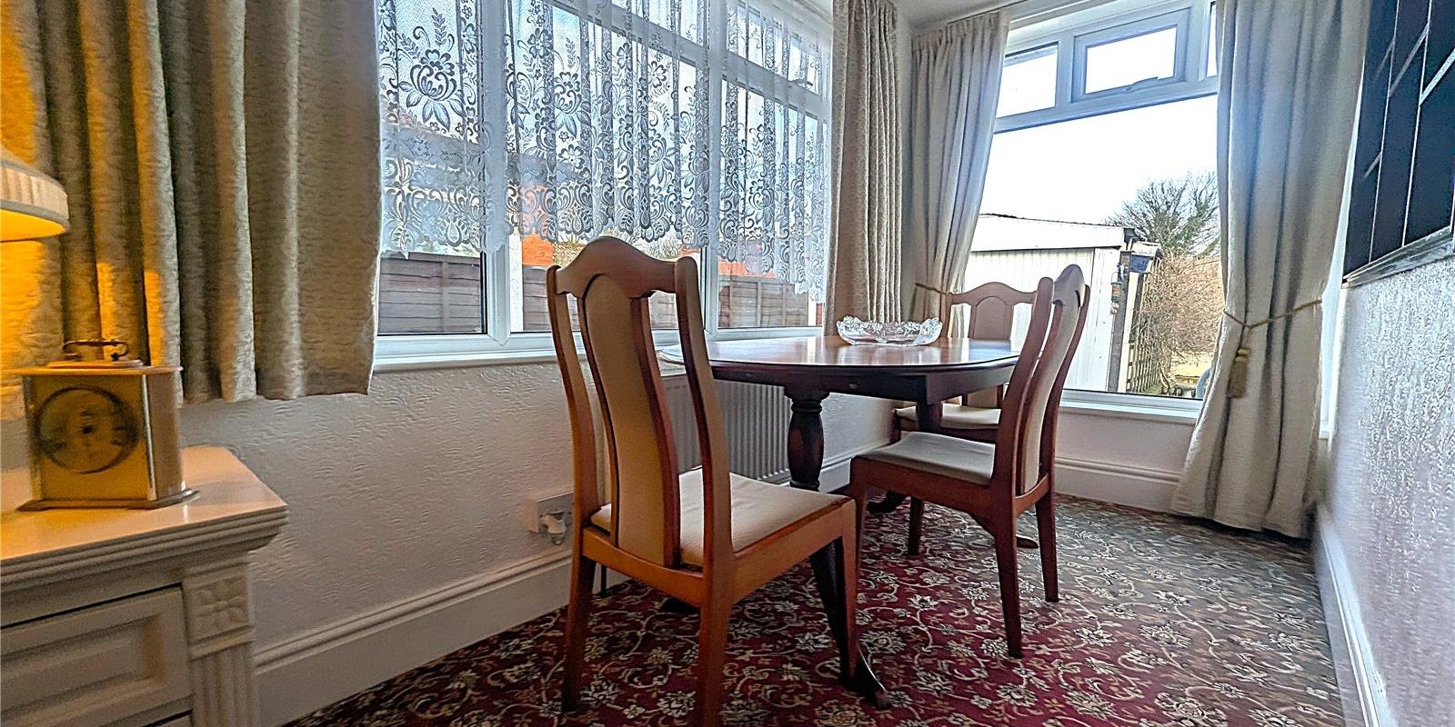 The property is approached via a welcoming frontage and opens into a characterful front lounge, beautifully enhanced by an attractive bay window that allows natural light to pour in. This versatile room could equally serve as an additional bedroom, making the layout adaptable to a range of needs. Beyond this, the bungalow offers a further two well-proportioned double bedrooms, both enjoying a pleasant outlook with ample space for furnishings.