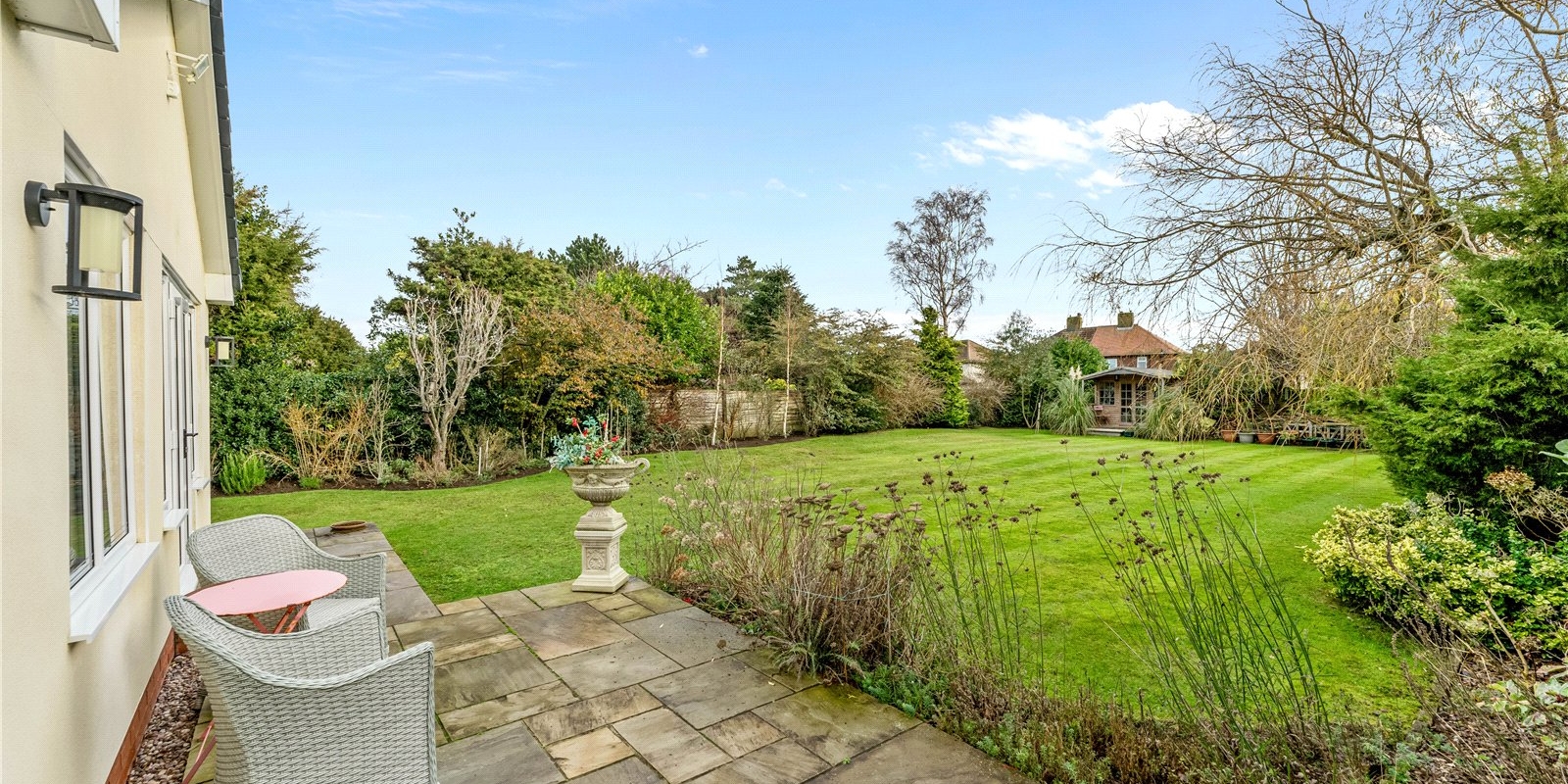 Externally, the property continues to impress. A private and well-maintained garden offers an excellent outdoor retreat, with a summer house positioned at the bottom, perfect for entertaining, hobbies, or relaxation. A side entrance beautifully paved with Indian stone provides convenient access to the rear of the property and adds to the home’s high-quality finish.