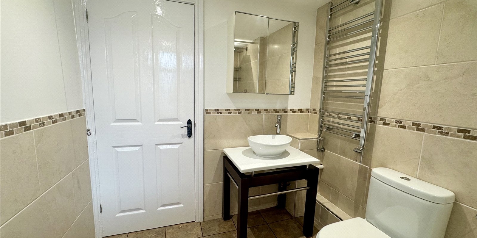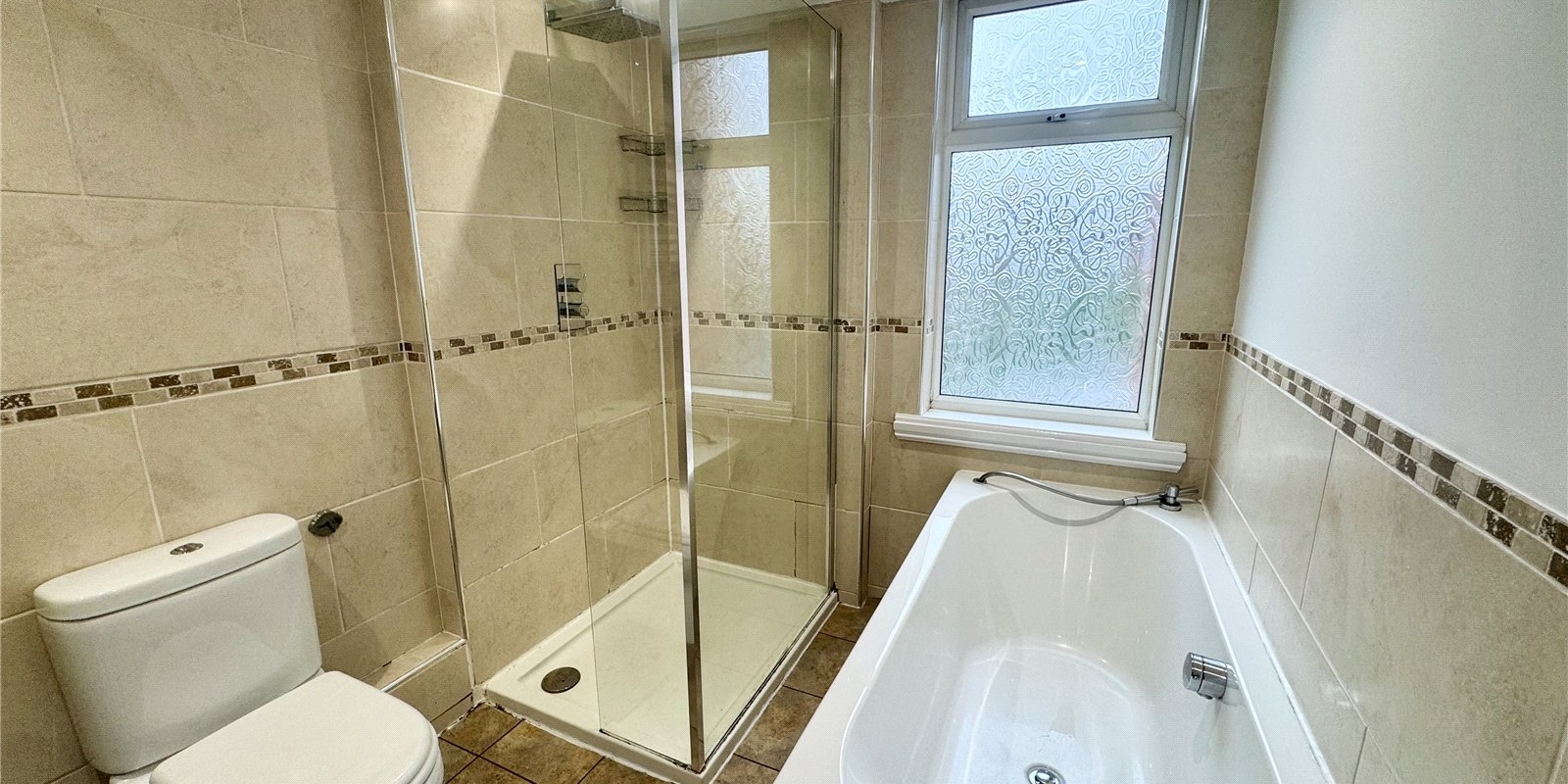 The property continues to impress upstairs, where you will find a stylish, modern family bathroom finished in neutral tones and featuring both a separate bath and shower, ideal for busy households. There are two well-proportioned bedrooms, both offering generous space, with the main bedroom benefiting from fitted wardrobes for convenient storage.