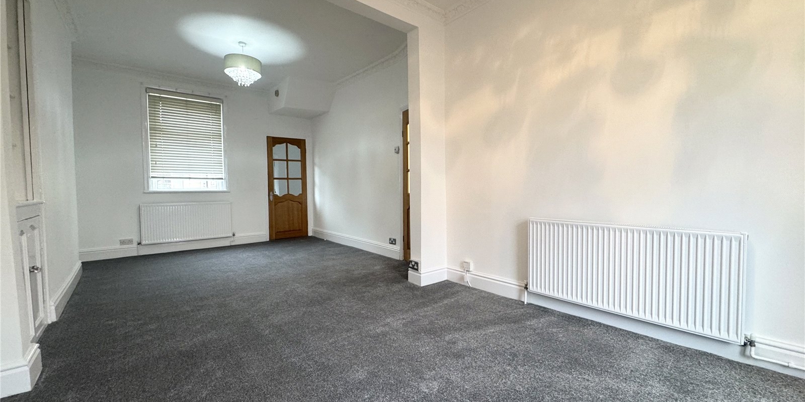 Upon entering, you are welcomed into a bright and inviting reception room, full of character and featuring an attractive bay window that allows natural light to pour into the space. The room offers a comfortable setting for both relaxing and entertaining, complemented by the home’s newly painted interiors and new carpets throughout the ground floor, which enhance the fresh, modern feel.