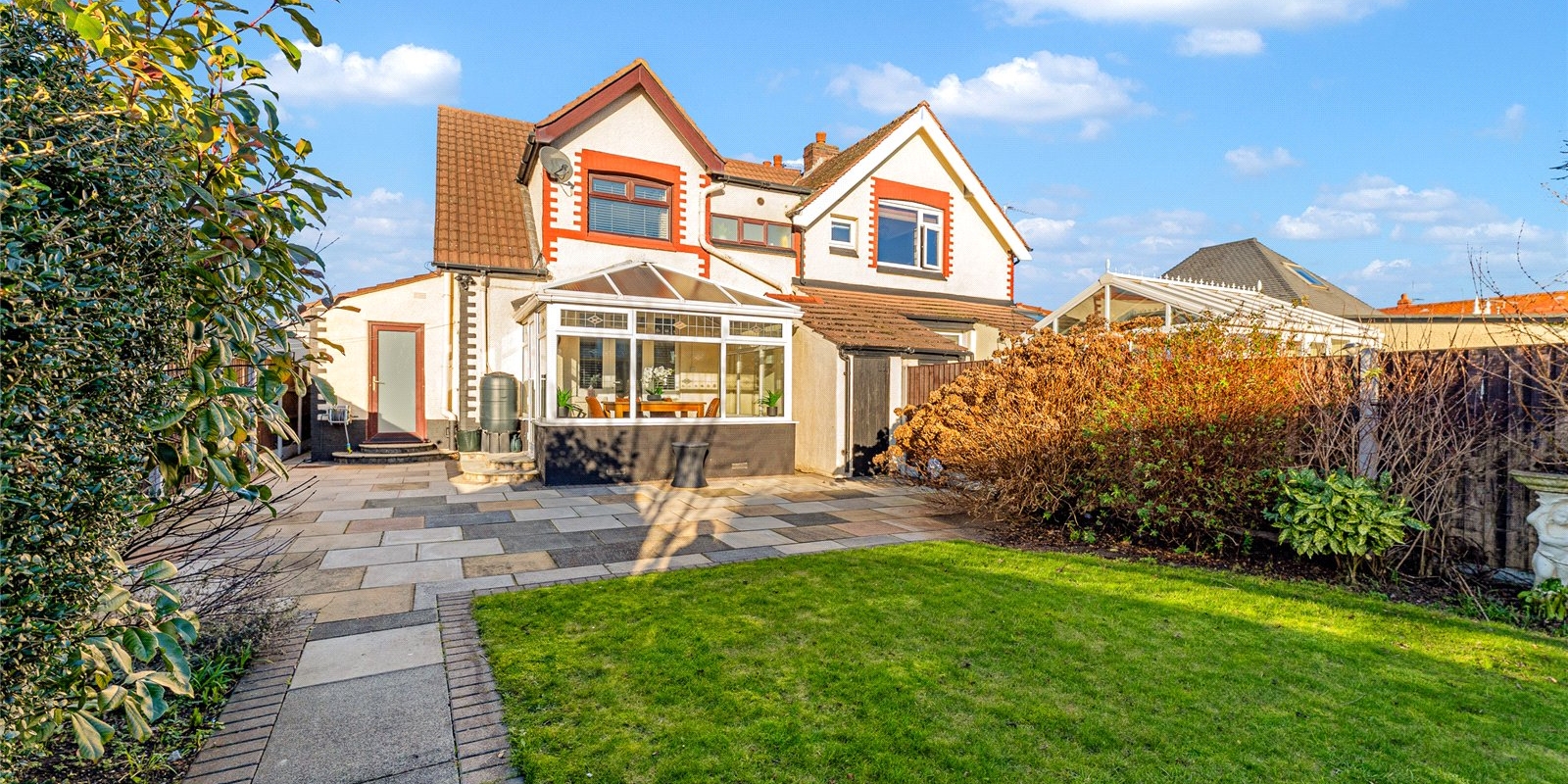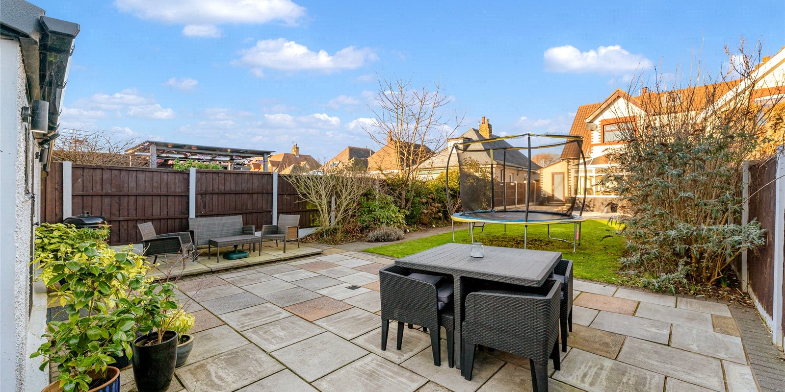 The rear garden is well maintained and offers a fantastic additional feature in the form of a converted outbuilding, currently used as a entertaining space , creating a great social space for hosting and relaxing all year round.