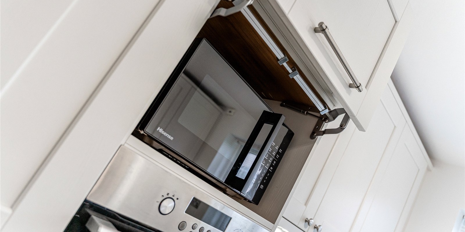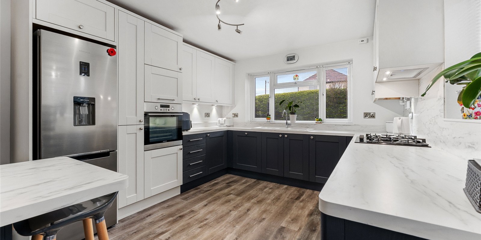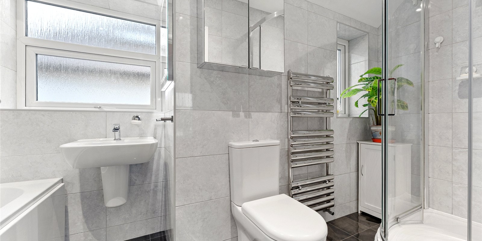The modern new kitchen is a real highlight, featuring integrated appliances, including a brand-new, unused dishwasher. It’s designed for convenience and style, offering plenty of space for meal preparation and storage. The kitchen also benefits from access to the side garden, making it ideal for al fresco dining during the warmer months.