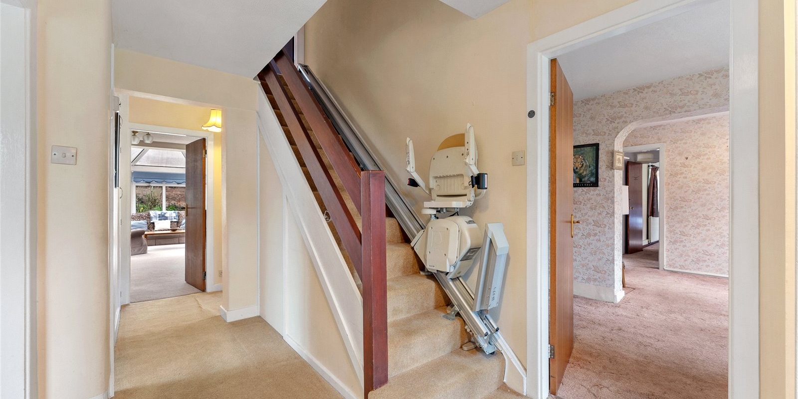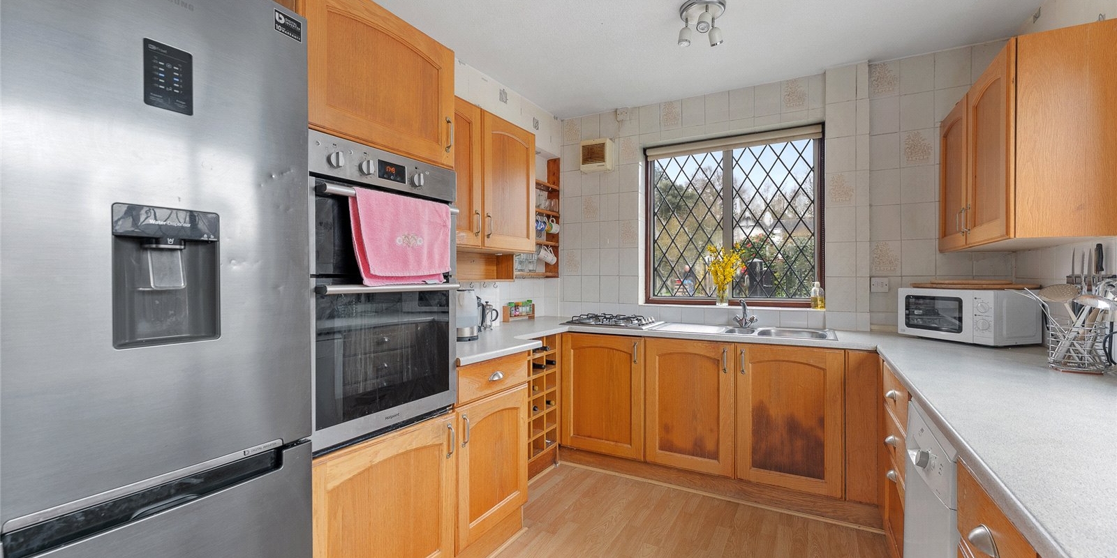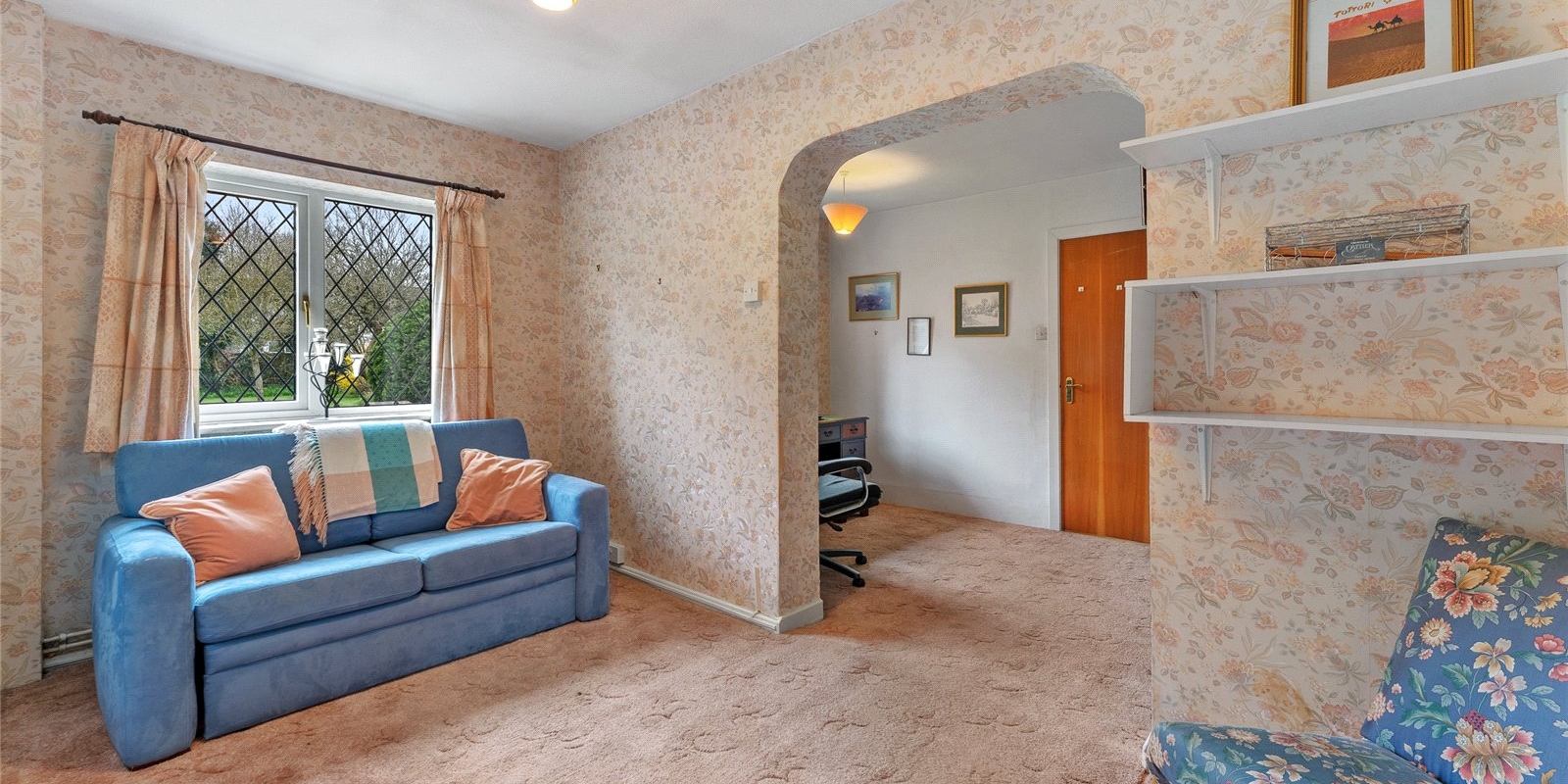 The accommodation is generously proportioned and versatile, extending to approximately 1,880 sq ft, with four well-sized bedrooms and multiple reception spaces that lend themselves perfectly to family living or reconfiguration. Externally, the property is complemented by a detached garage, offering excellent storage or workshop potential, alongside extensive gardens that provide a wonderful backdrop for outdoor living and future enhancement.
