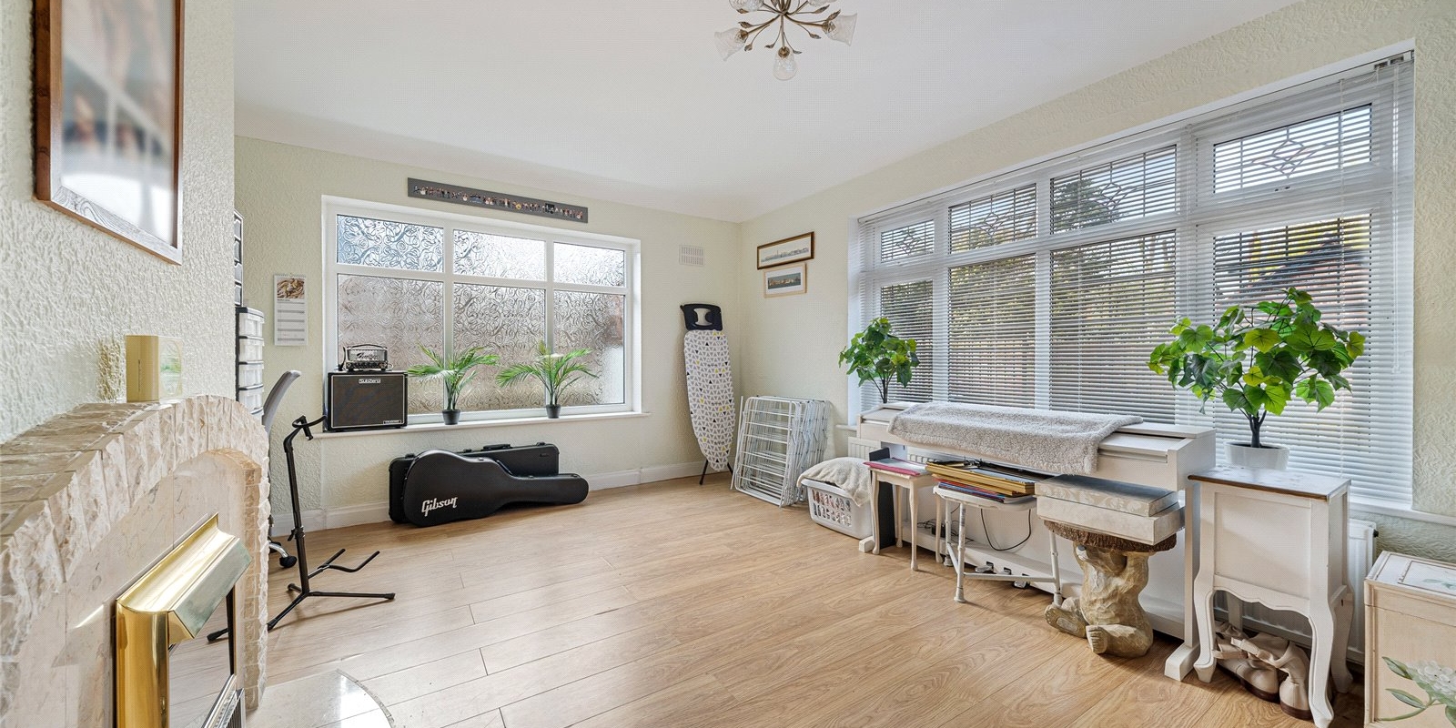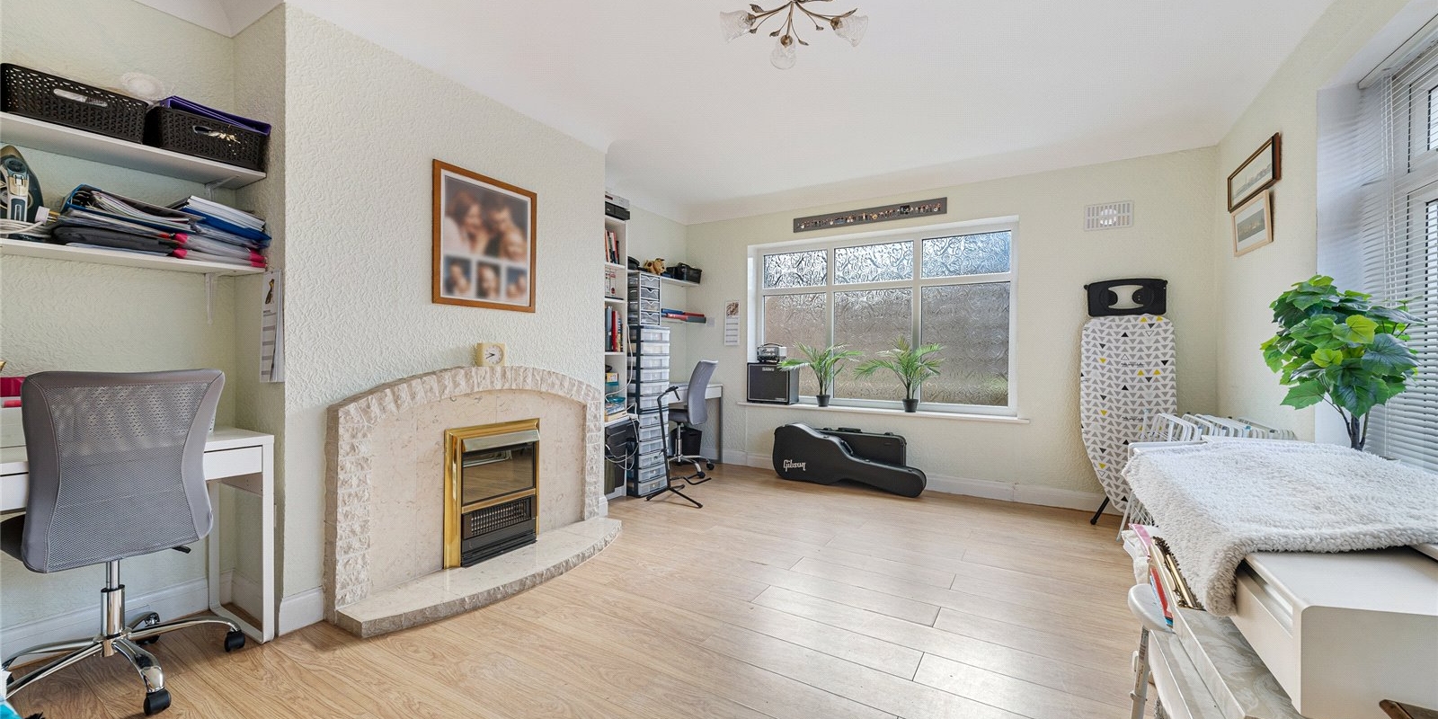 The kitchen is well-proportioned and conveniently located, with access to the rear garden. There are two generously sized bedrooms, including a large primary bedroom, along with a well-appointed bathroom.