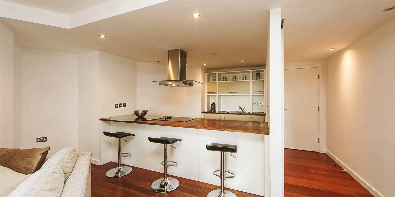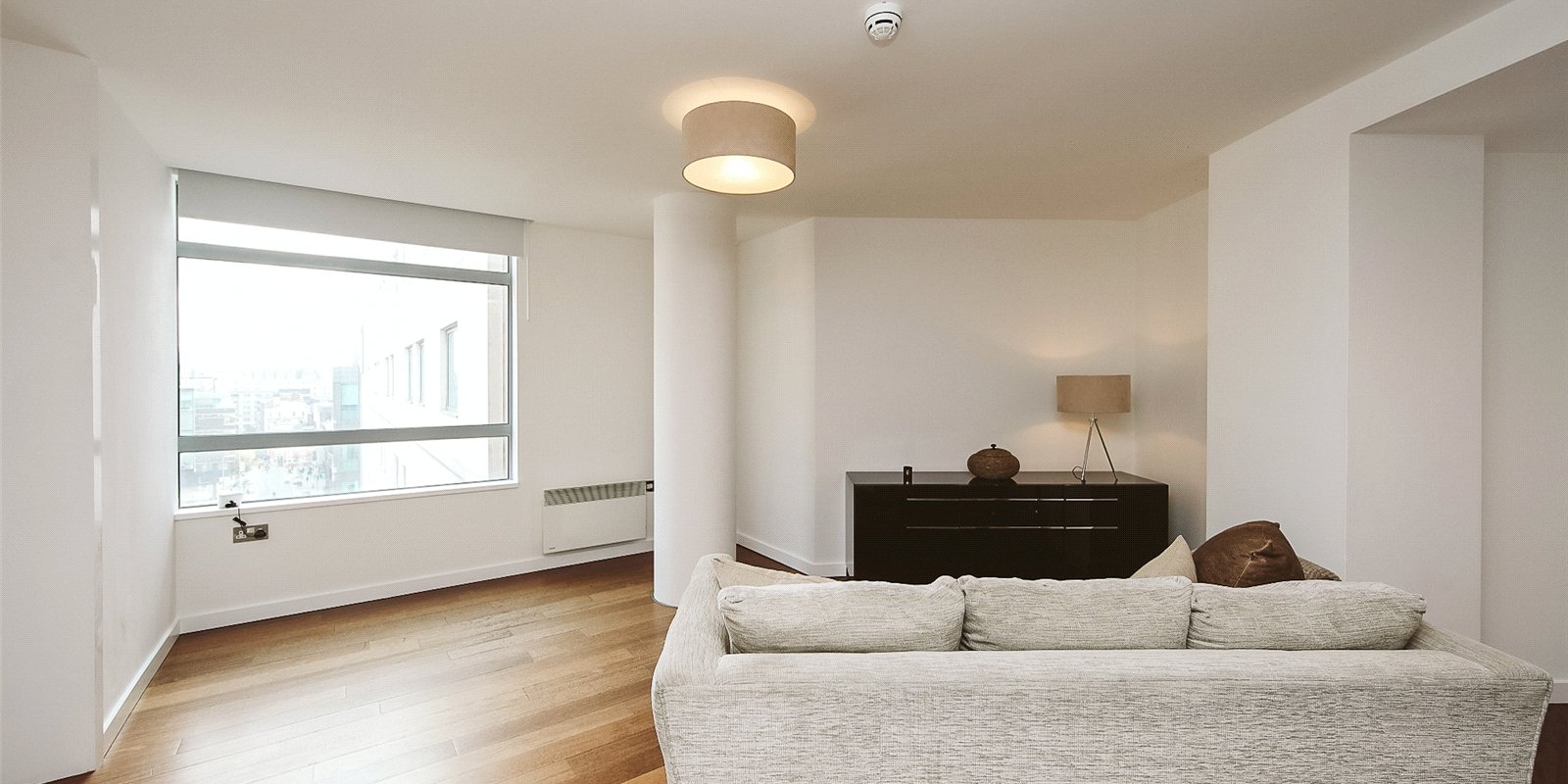 Positioned on the 8th floor of the iconic Beetham Tower, this modern two-bedroom apartment offers stylish city-centre living in the heart of Liverpool’s business district. The property features a spacious open-plan lounge and kitchen with large windows, flooding the space with natural light.