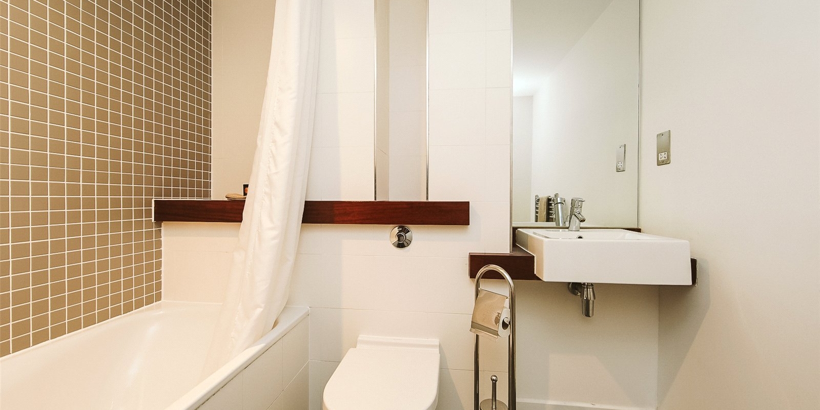 Both bedrooms are generously sized, with the master benefiting from built-in storage and en-suite. The sleek bathroom is finished to a high standard, and the property includes secure entry, lift access, and 24-hour concierge service.