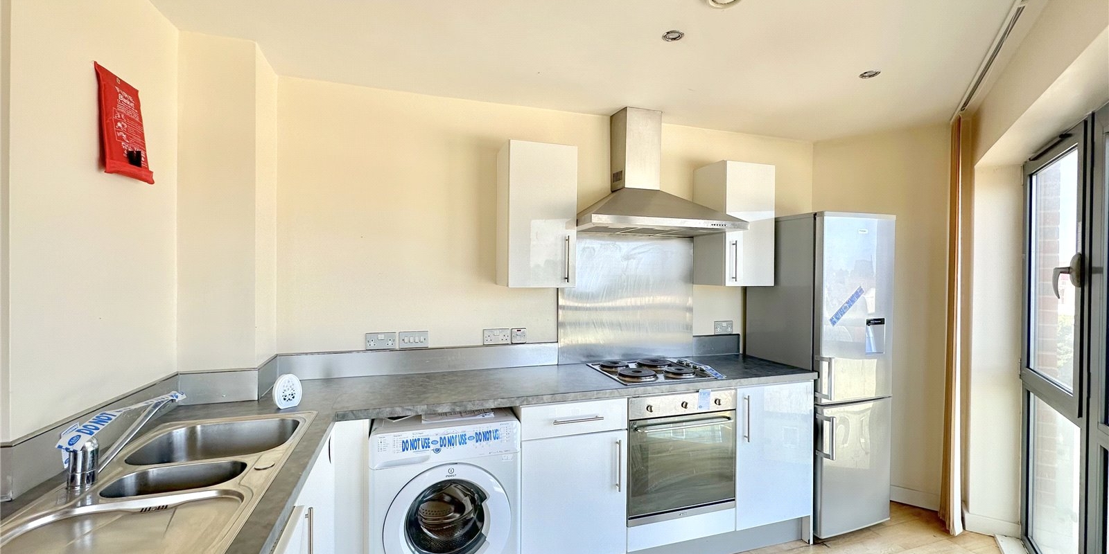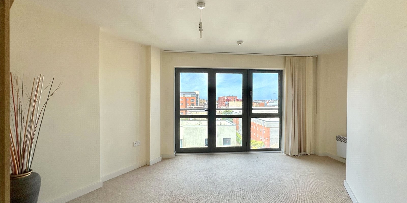Upon entering, you’re welcomed by a spacious entrance hall that flows seamlessly into an open-plan lounge-diner and kitchen area. Featuring integrated appliances and elegant Juliette balconies, this bright and airy living space is ideal for relaxation or entertaining. The apartment also includes a generous double bedroom and a contemporary three-piece family bathroom.