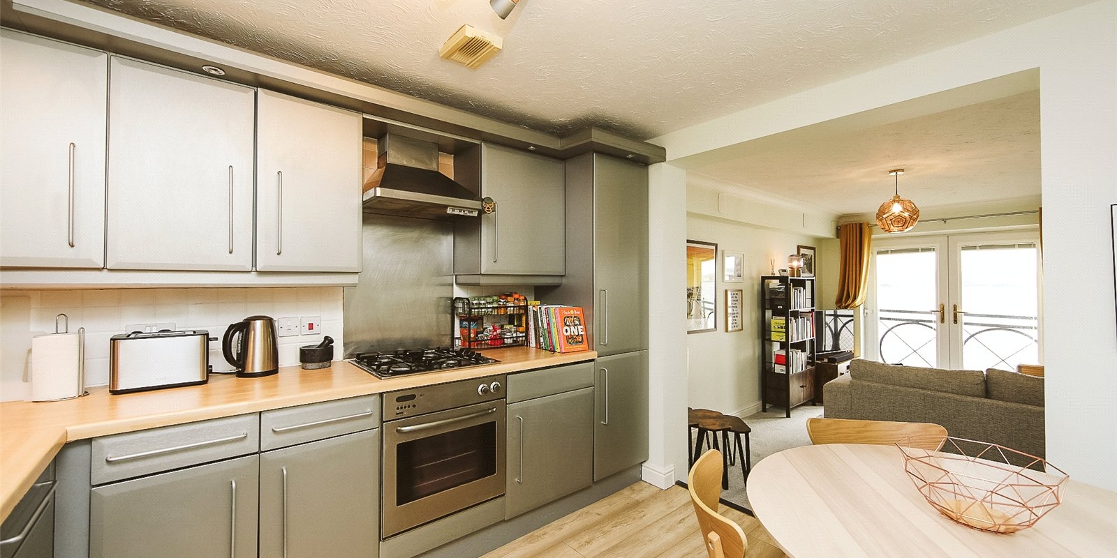 As you enter the spacious hallway you will find two good sized storage spaces, each with power outlets. The property offers a good sized, bright open plan lounge/diner with patio doors to a Juliet balcony offering stunning waterfront/marina views. The stylish kitchen benefits from some built in appliances and room for a dining table and chairs. The property features two spacious bedrooms, with the primary enjoying the added convenience of a fitted wardrobe.