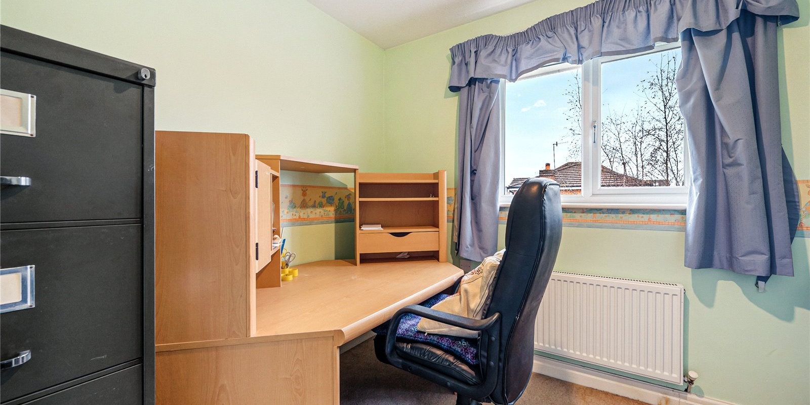 The first floor comprises two well-proportioned double bedrooms, including a rear-facing master bedroom with an en-suite shower room, and a versatile single bedroom, currently utilised as a home office. A separate shower room serves the additional bedrooms.