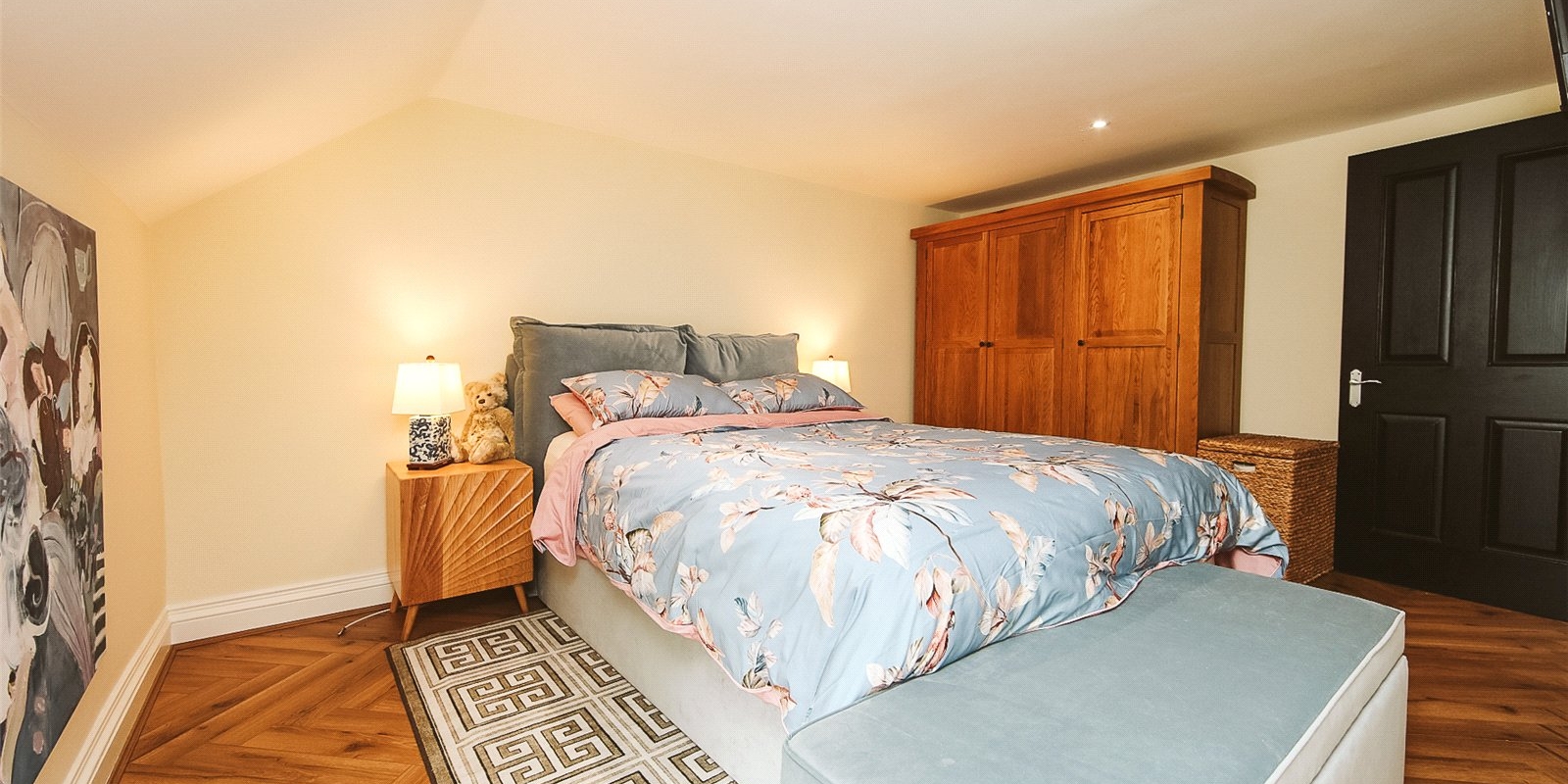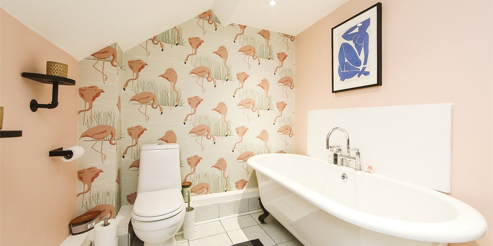 A standout feature of this property is the main bathroom—stylish and serene, it features a freestanding roll-top bath, tasteful décor, and high-quality finishes that elevate the space into a luxurious sanctuary.