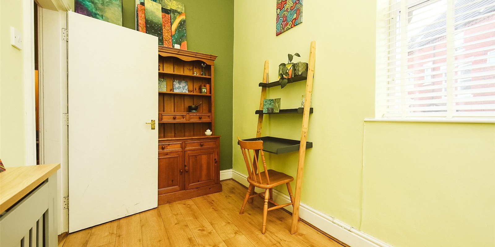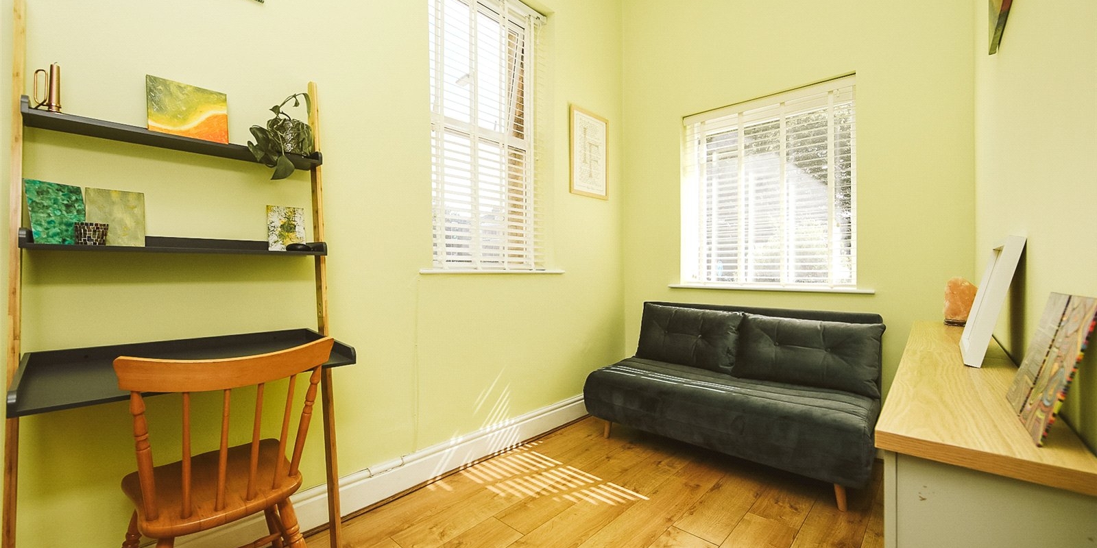 The property retains charming original features throughout, adding character to its fresh, modern design. The large master bedroom is an impressive, sunlit space with oversized windows and plenty of room for wardrobes and additional furniture. The second bedroom, also filled with natural light, offers flexibility as a guest room, nursery, or an ideal home office/study.