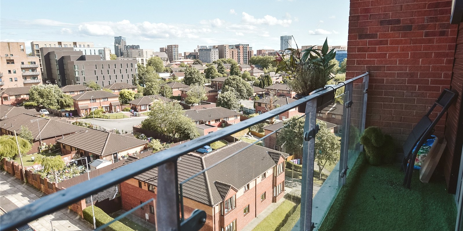 Positioned within a prestigious development, the apartment boasts a contemporary layout spread across two floors, designed to maximise both space and natural light. The upper floor features an expansive open-plan living, dining, and kitchen area, fully fitted with high-quality appliances and stylish finishes. Floor-to-ceiling windows and sliding glass doors open onto a private, newly decked balcony, providing spectacular panoramic views across Liverpool’s dynamic cityscape—an ideal spot for entertaining or relaxing.