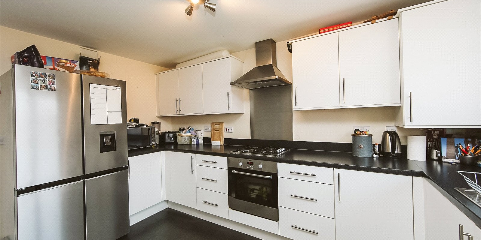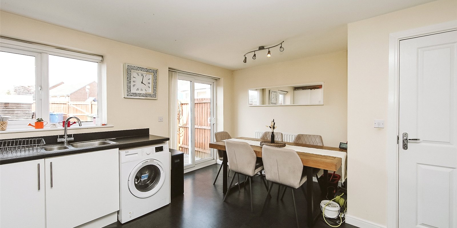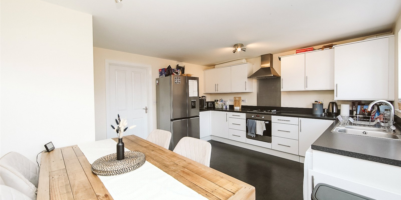 Step inside to find a bright and airy living space with a clean, contemporary finish throughout. The modern kitchen is well-equipped and functional, offering ample storage and worktop space. A convenient downstairs WC adds to the practicality of the ground floor layout.