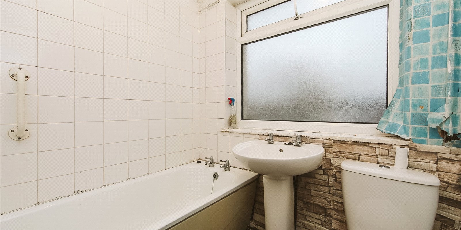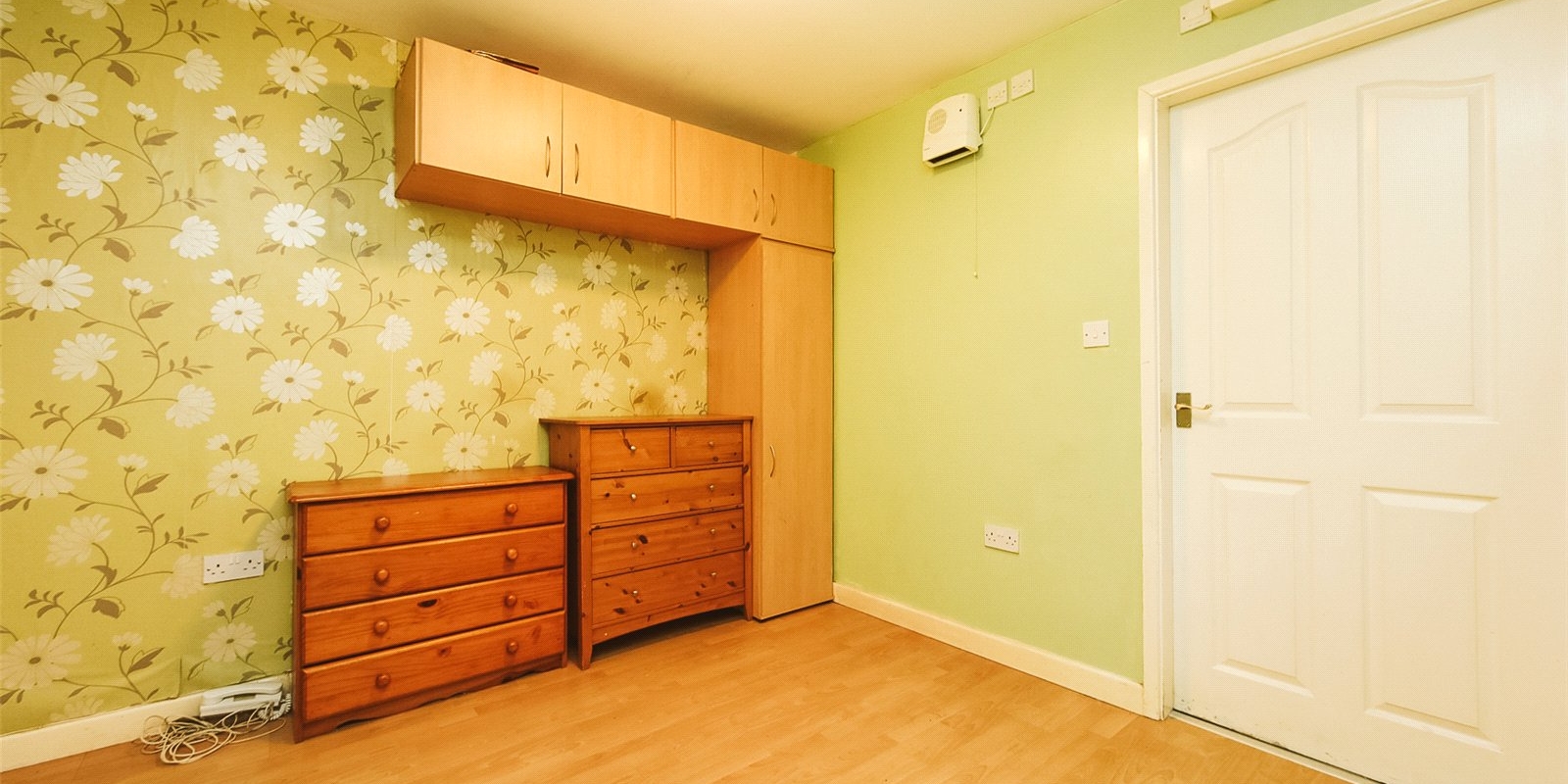 Upstairs, there are three well-proportioned bedrooms. The family bathroom is fitted with a bath, wash hand basin, and WC, finished with part-tiled walls for easy maintenance.