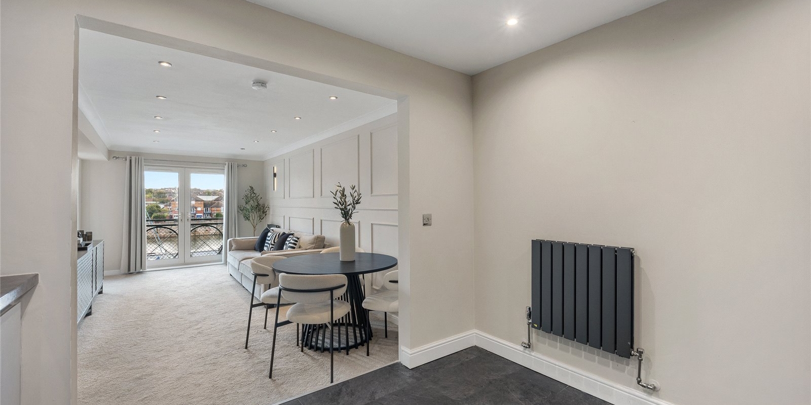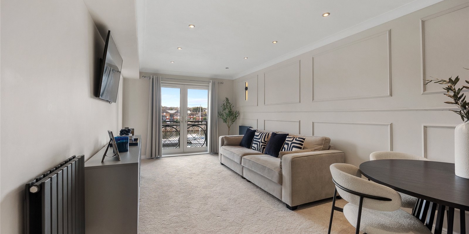 The property offers a good sized, bright open plan lounge/diner with feature panelling, door taking you out to the balcony and patio doors with Juliet balcony offering stunning waterfront/marina views. The stylish kitchen benefits from some built in appliances to include washing machine, dryer, fridge/freezer and hob/oven.