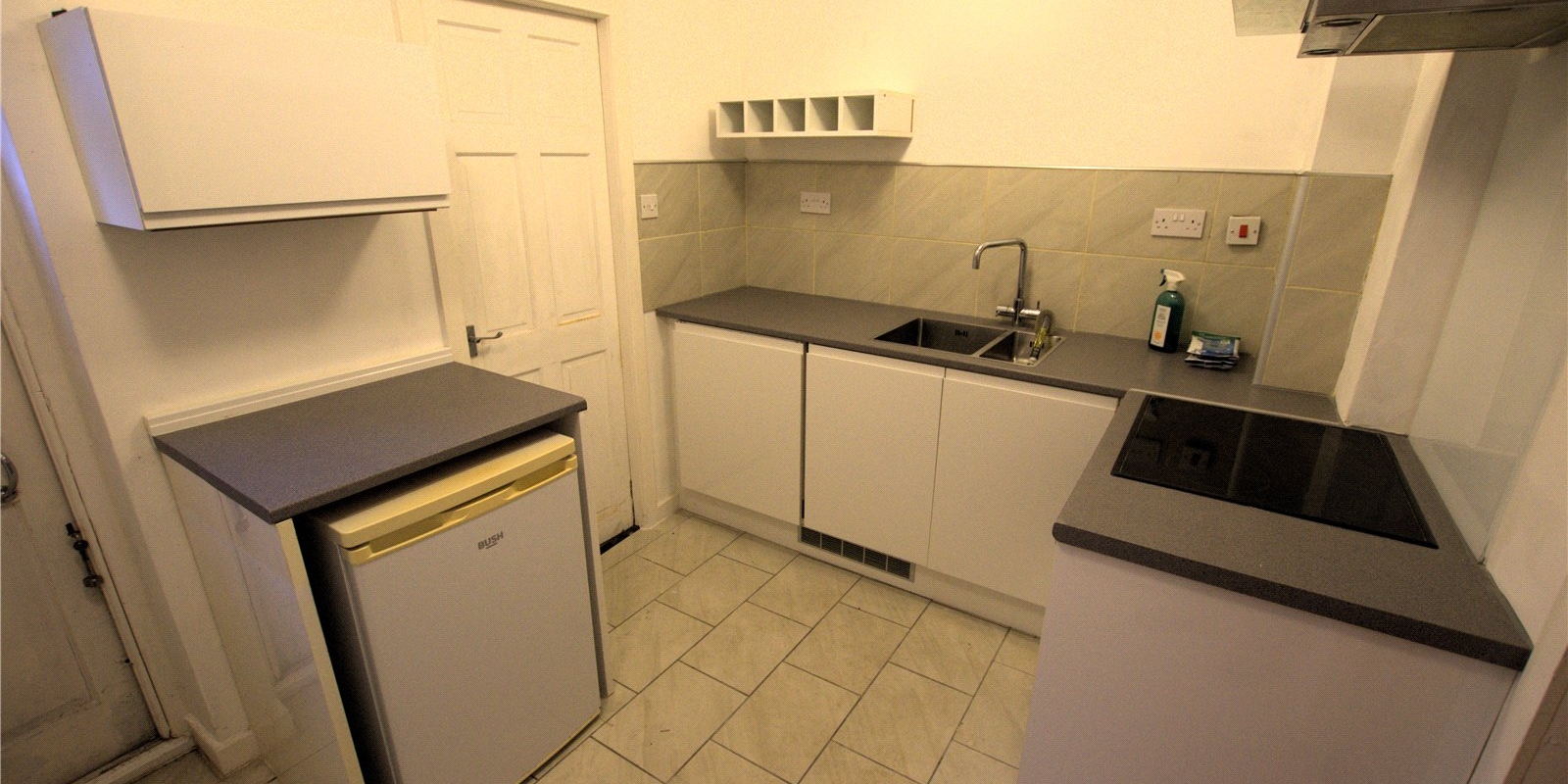 The kitchen is positioned to the rear and provides a functional workspace with direct access to the ground floor amenities. Upstairs, the property features two well-proportioned bedrooms—one large double and a second spacious single—both offering natural light and versatile layout options. A three-piece bathroom completes the first floor, with a compact yet efficient design.