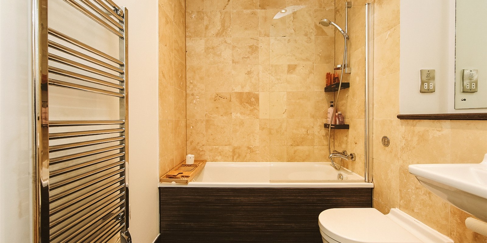 Modern bathroom with shower over bath