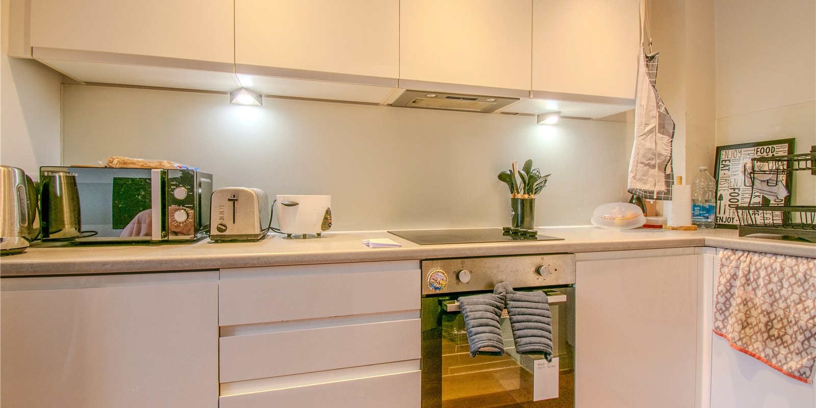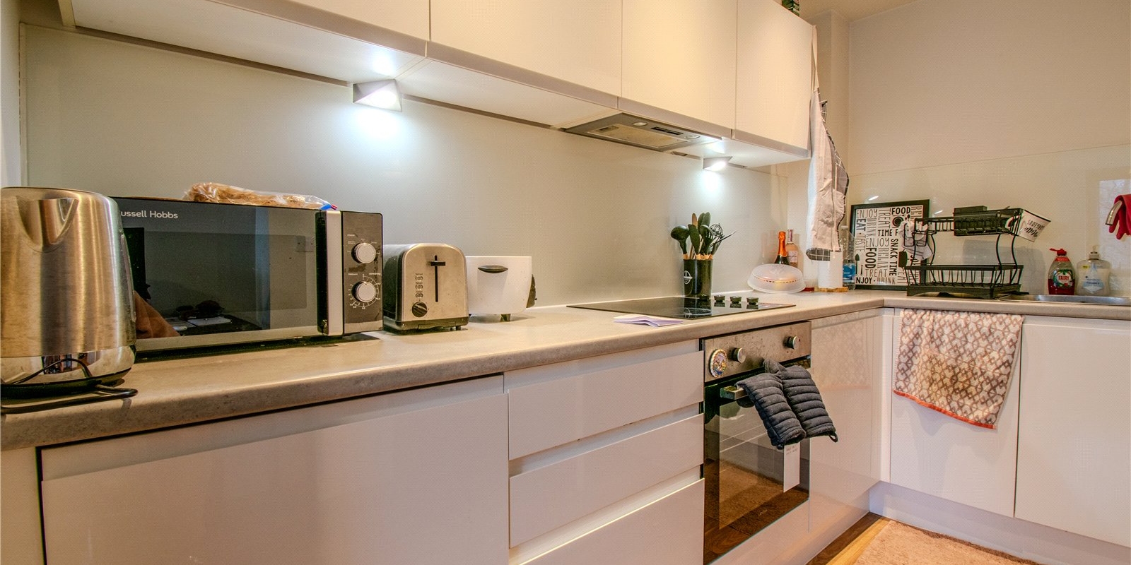 The apartment welcomes you into a bright and well-proportioned open plan living and kitchen area, designed to maximise both space and natural light. The kitchen is fitted with modern units and integrated appliances, creating a clean and practical space ideal for everyday living or entertaining. The lounge area offers ample room for both relaxation and dining, with a layout that lends itself well to a variety of furniture arrangements.