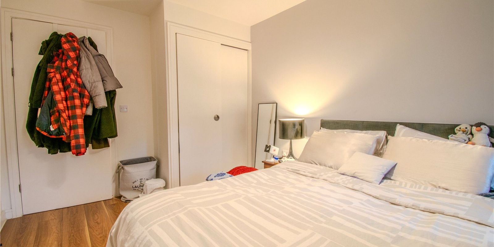 The double bedroom is generously sized and enjoys a peaceful position within the building, providing a comfortable retreat at the end of the day. A sleek, contemporary bathroom completes the accommodation, finished with modern tiling and quality fixtures.
