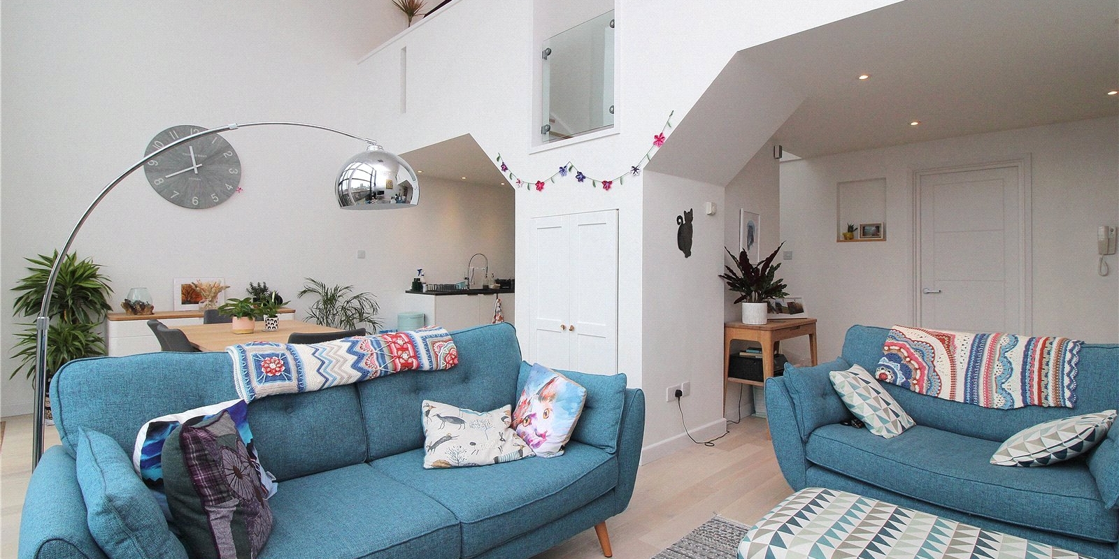 Additional storage is available on the first-floor landing, ensuring the apartment remains clutter-free and functional. The layout has been thoughtfully planned to maximise space and comfort, with clear separation between living and sleeping areas.