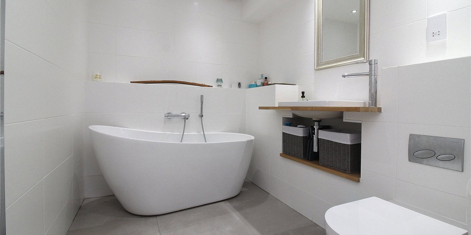 Also on the ground floor is a sleek, fully fitted bathroom, finished to a high standard and positioned for convenience. A staircase leads to the upper level, where two large double bedrooms are situated. Both rooms offer excellent proportions and flexibility for use as sleeping accommodation, guest rooms, or home offices. The principal bedroom benefits from a private en-suite shower room, adding a touch of luxury and privacy.