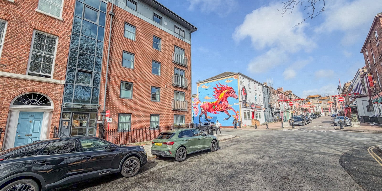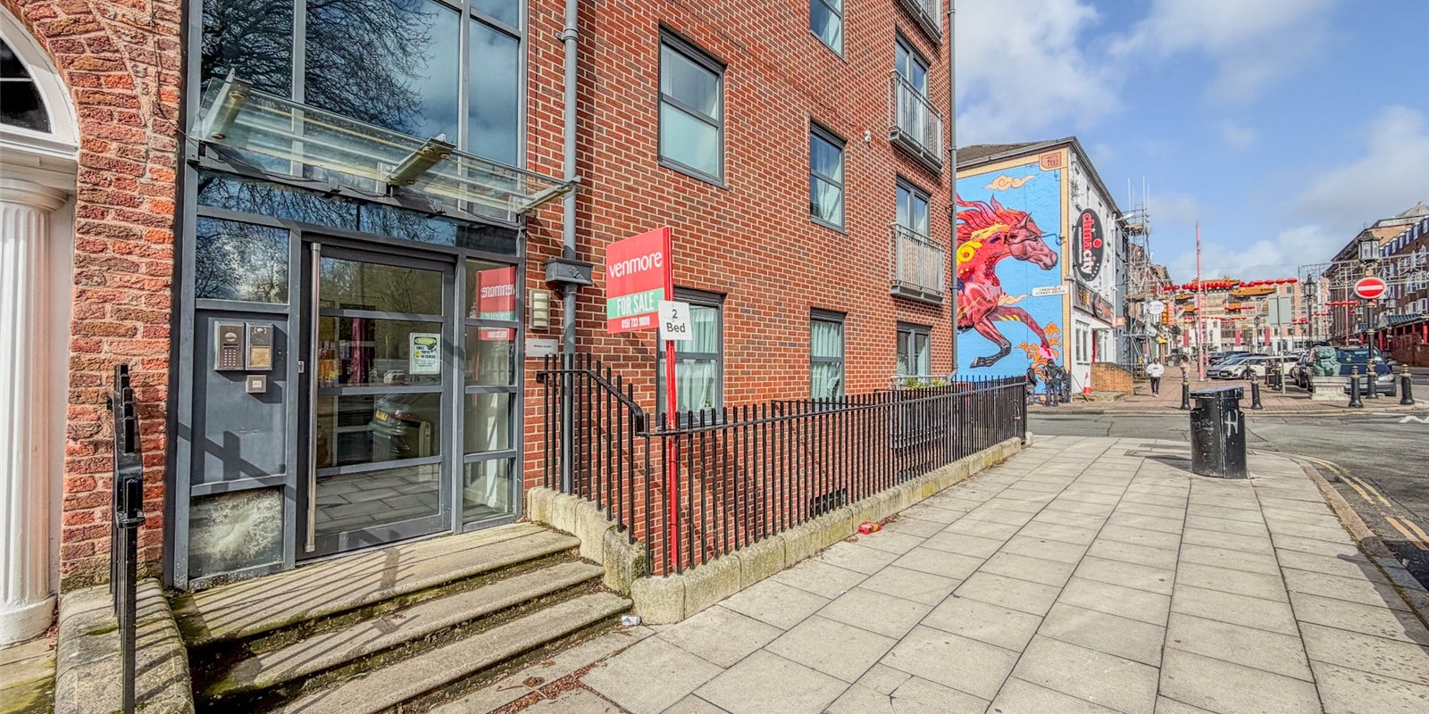 The building itself enjoys a central position within Liverpool’s Chinatown district, surrounded by an eclectic mix of restaurants, cafés, cultural landmarks, and excellent transport links. With Liverpool Lime Street and Central Station both within easy reach, the apartment offers effortless access across the city and beyond.