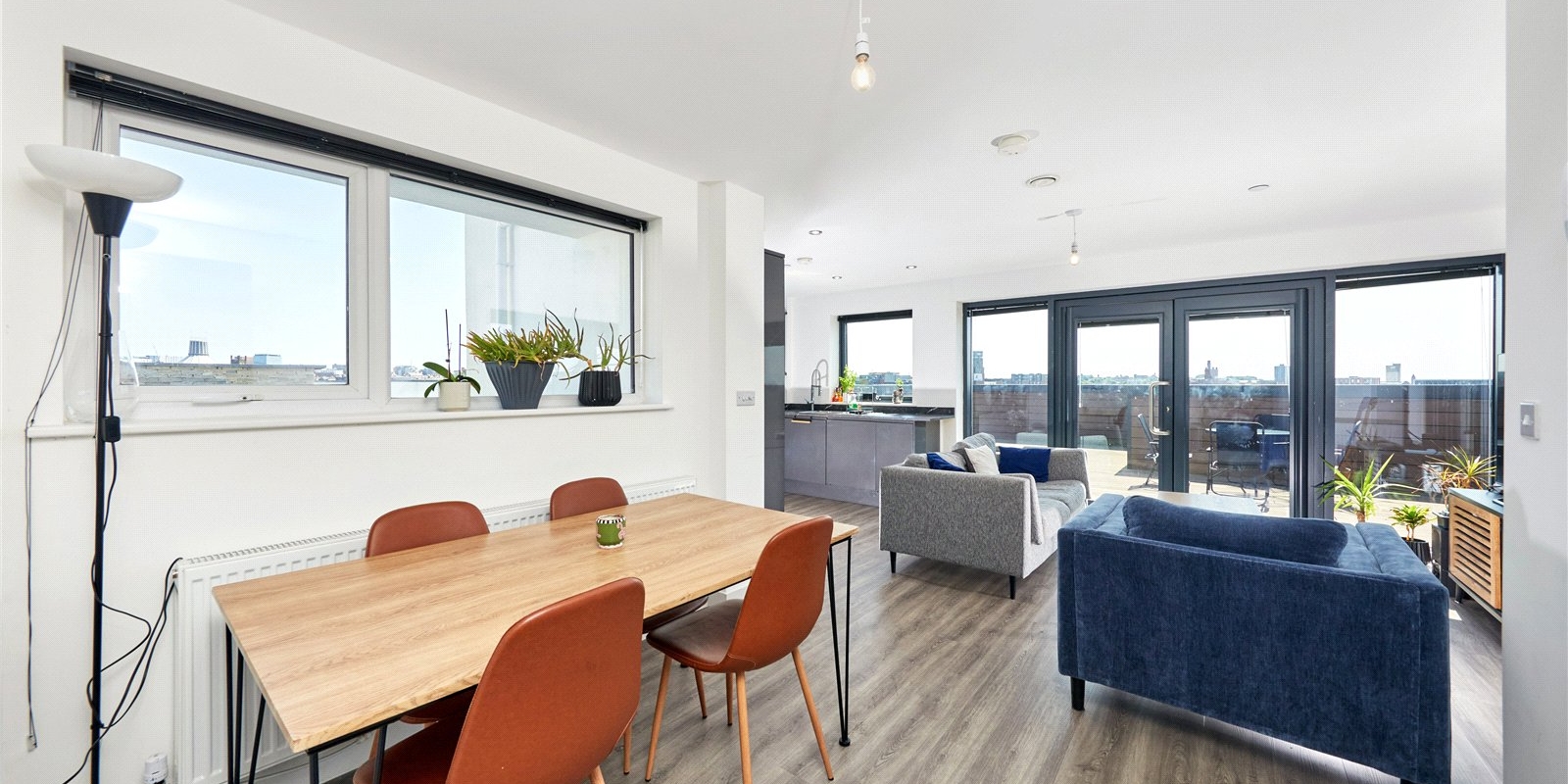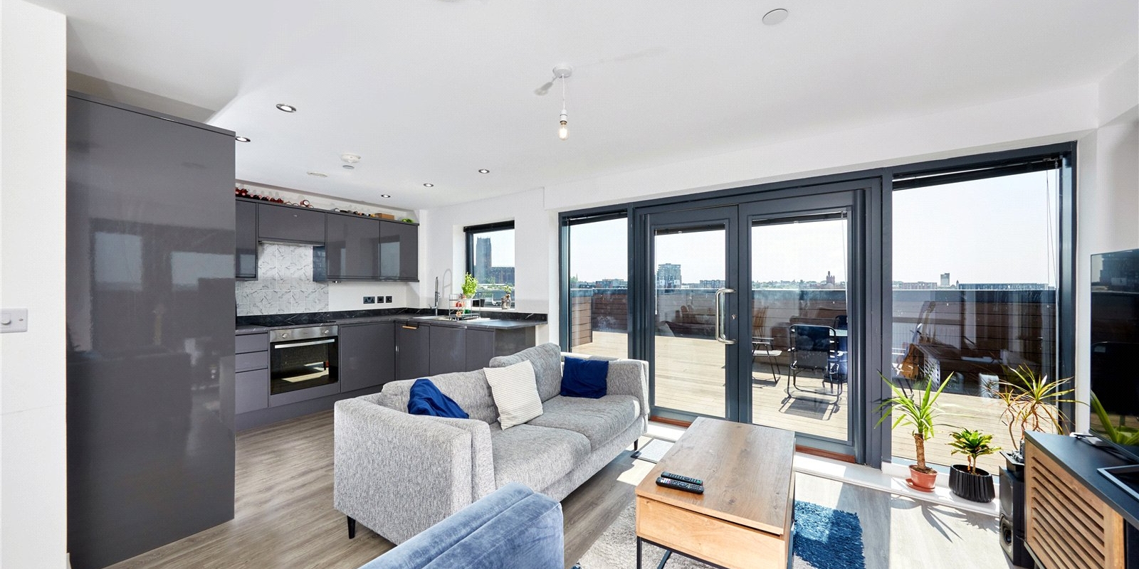 The sleek kitchen blends effortlessly into the living space, complete with high-spec, integrated appliances, modern cabinetry, and stone worktops. Whether you're cooking midweek meals or hosting a dinner party, this space is as practical as it is beautiful.