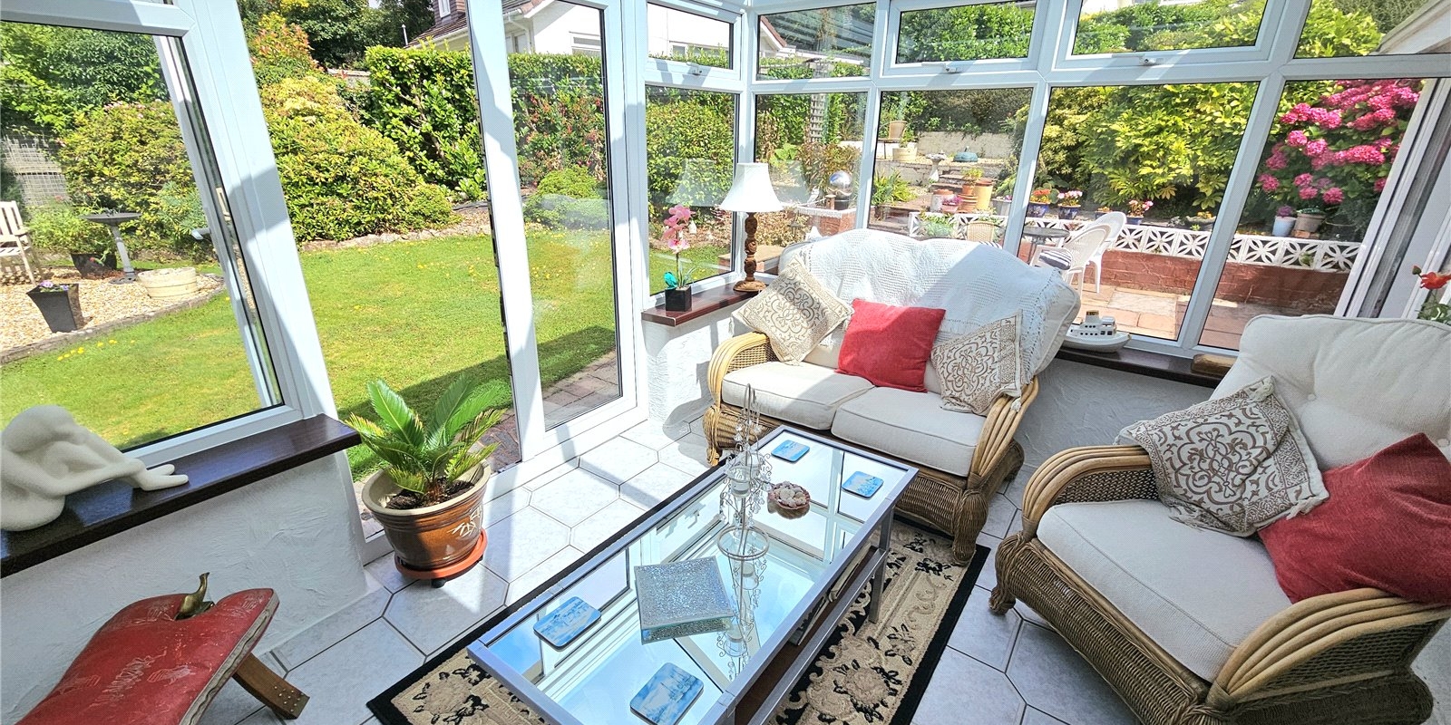 Outside is where the property shows itself even further. The property has a lawned front garden. At the rear of the bungalow is the true showpiece, with a large patio area overlooking the lower lawned area which is very private with well-established boarders.