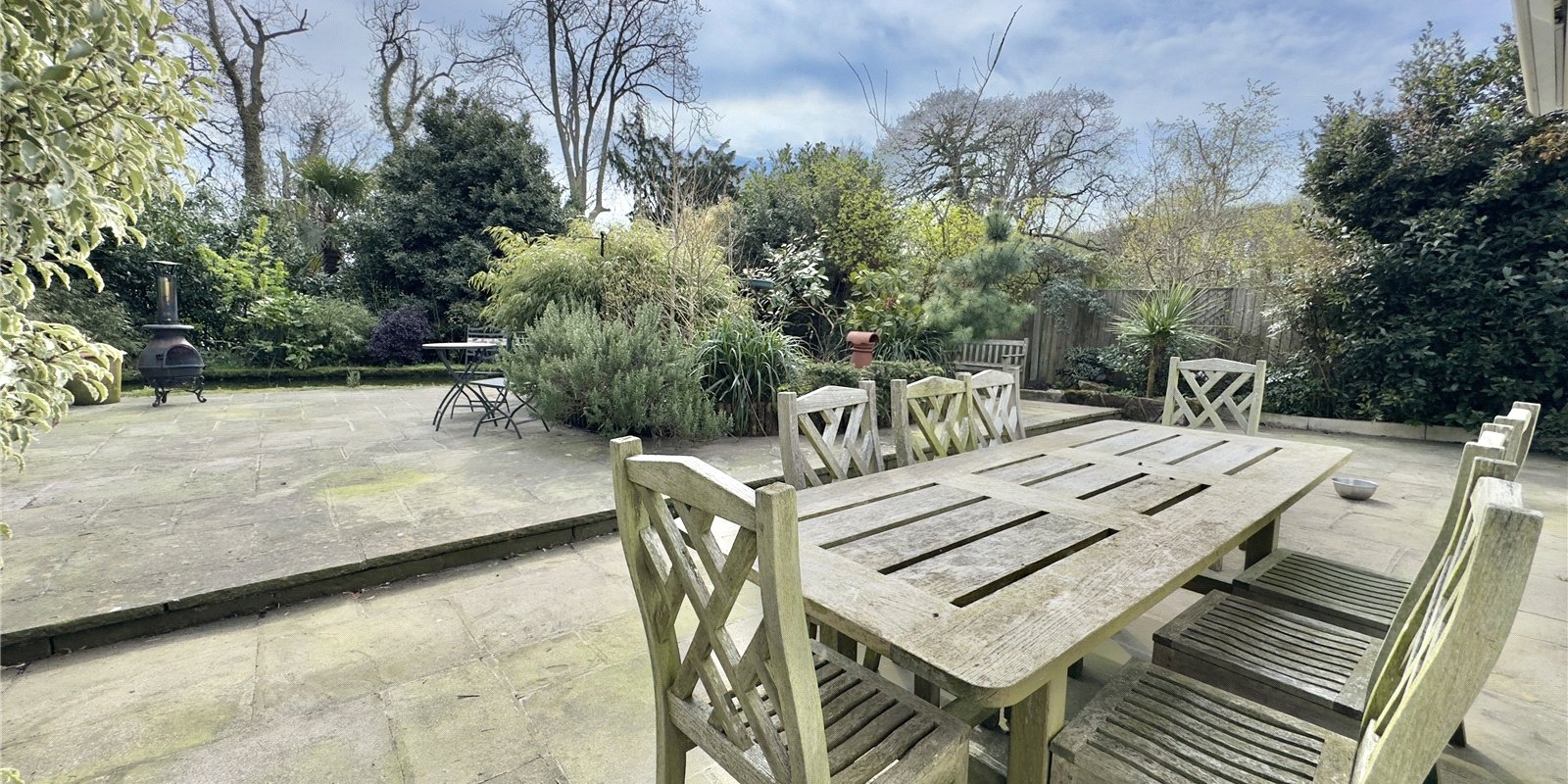 At the rear of the property, you’ll find a beautifully maintained flagged patio garden with a feature pond, and a hidden paved patio garden offering a private retreat. The former garage has been cleverly converted into office space, and there’s also a large summer house and storage shed, providing excellent versatility and storage.