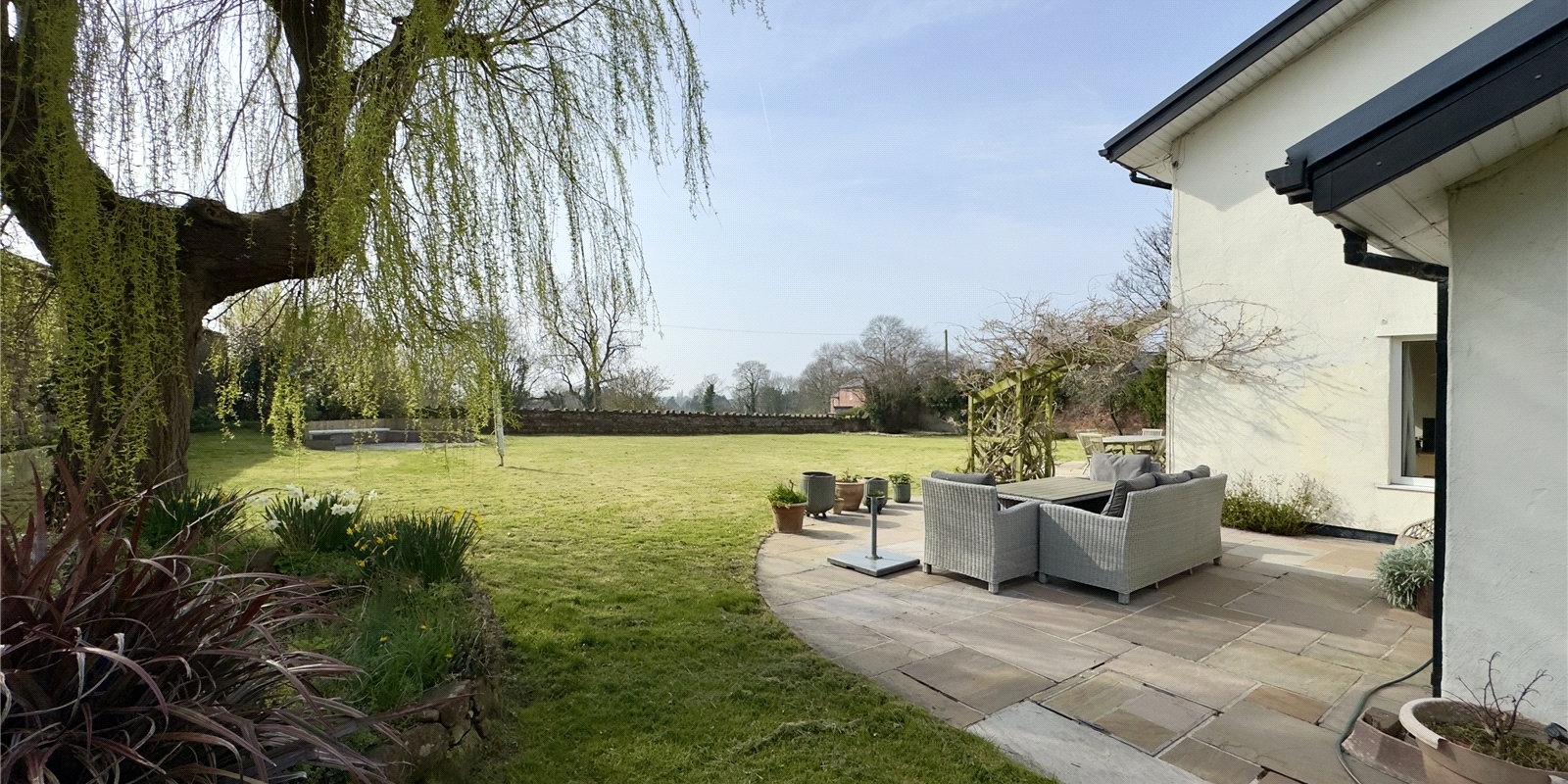 Externally, the property provides off-road parking for multiple vehicles to the front, along with a pleasant patio area. The home is enclosed by attractive sandstone walls, adding both character and privacy. The expansive rear garden is a standout feature, enjoying a sunny aspect and being predominantly laid to lawn, offering excellent space for families, outdoor entertaining, or simply relaxing in peaceful surroundings.