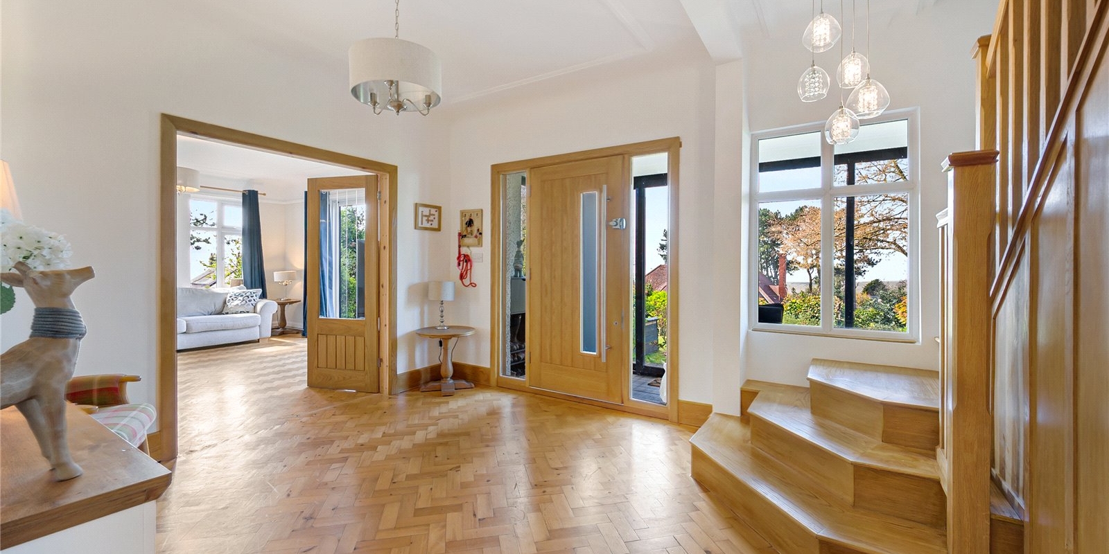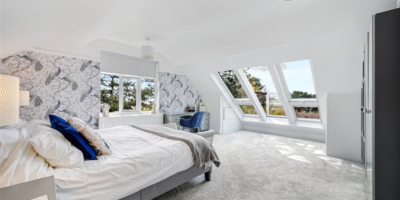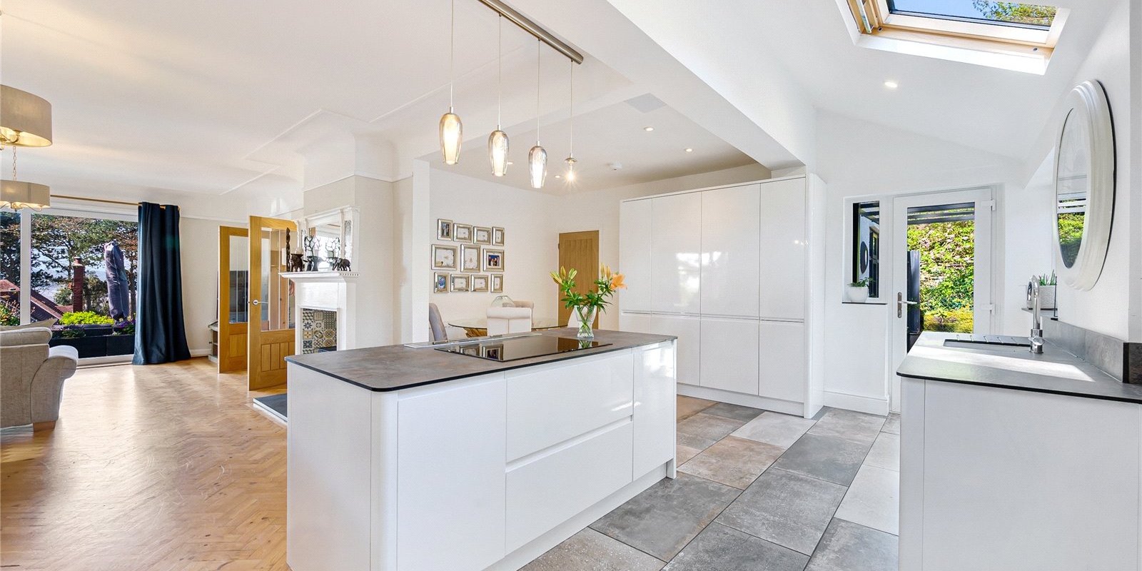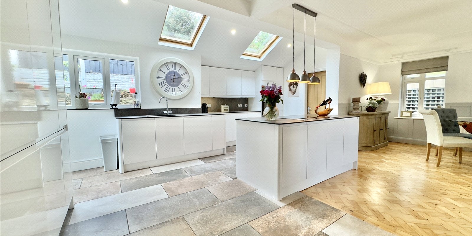 To the first floor you have three double bedrooms, all well-lit and fitted with plush carpet. The master bedroom has been recently fitted with a beautiful en suite and an amazing Velux Cabrio to take in the breathtaking views. Finishing the upstairs is a stunning four-piece family bathroom.