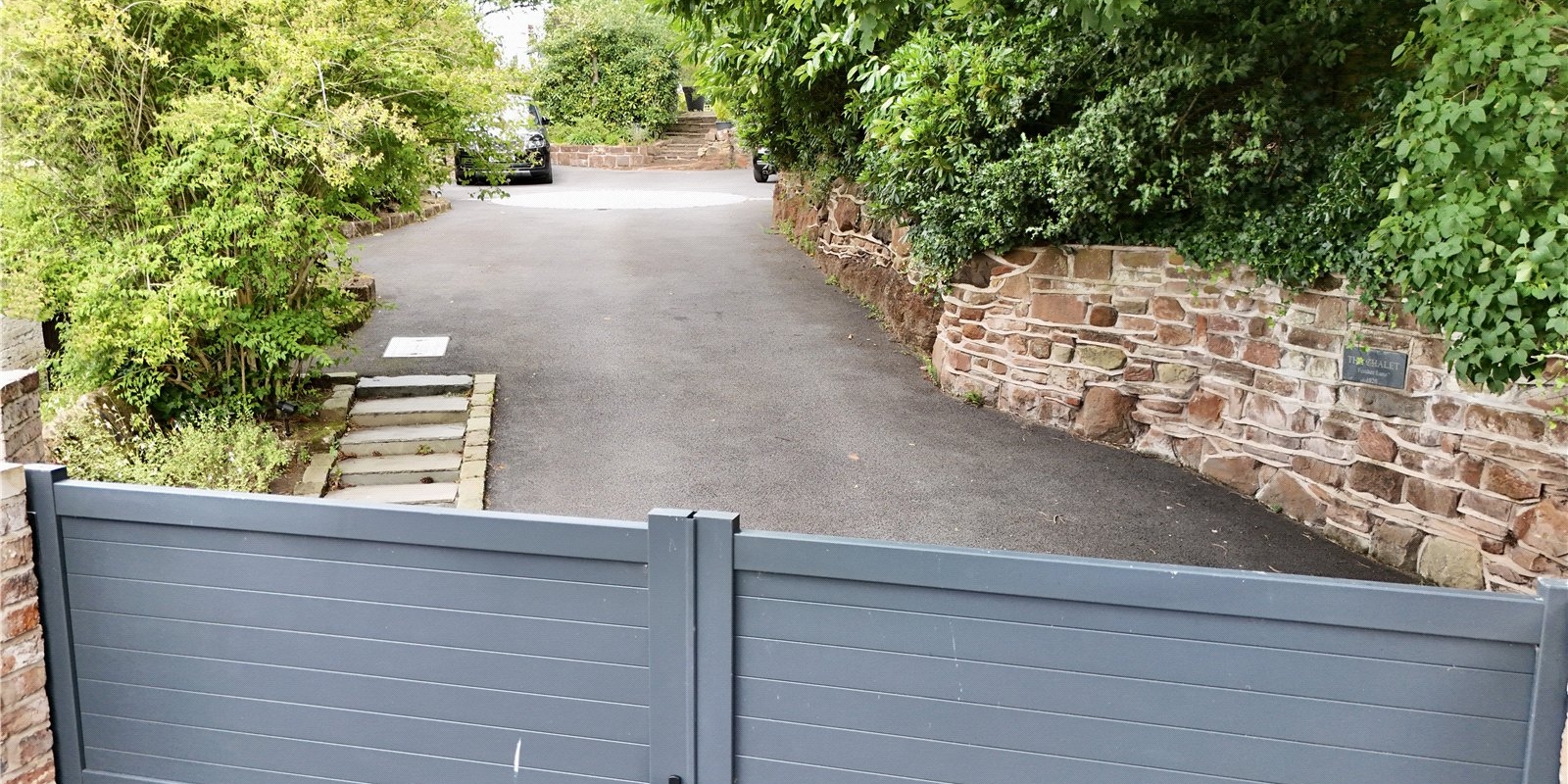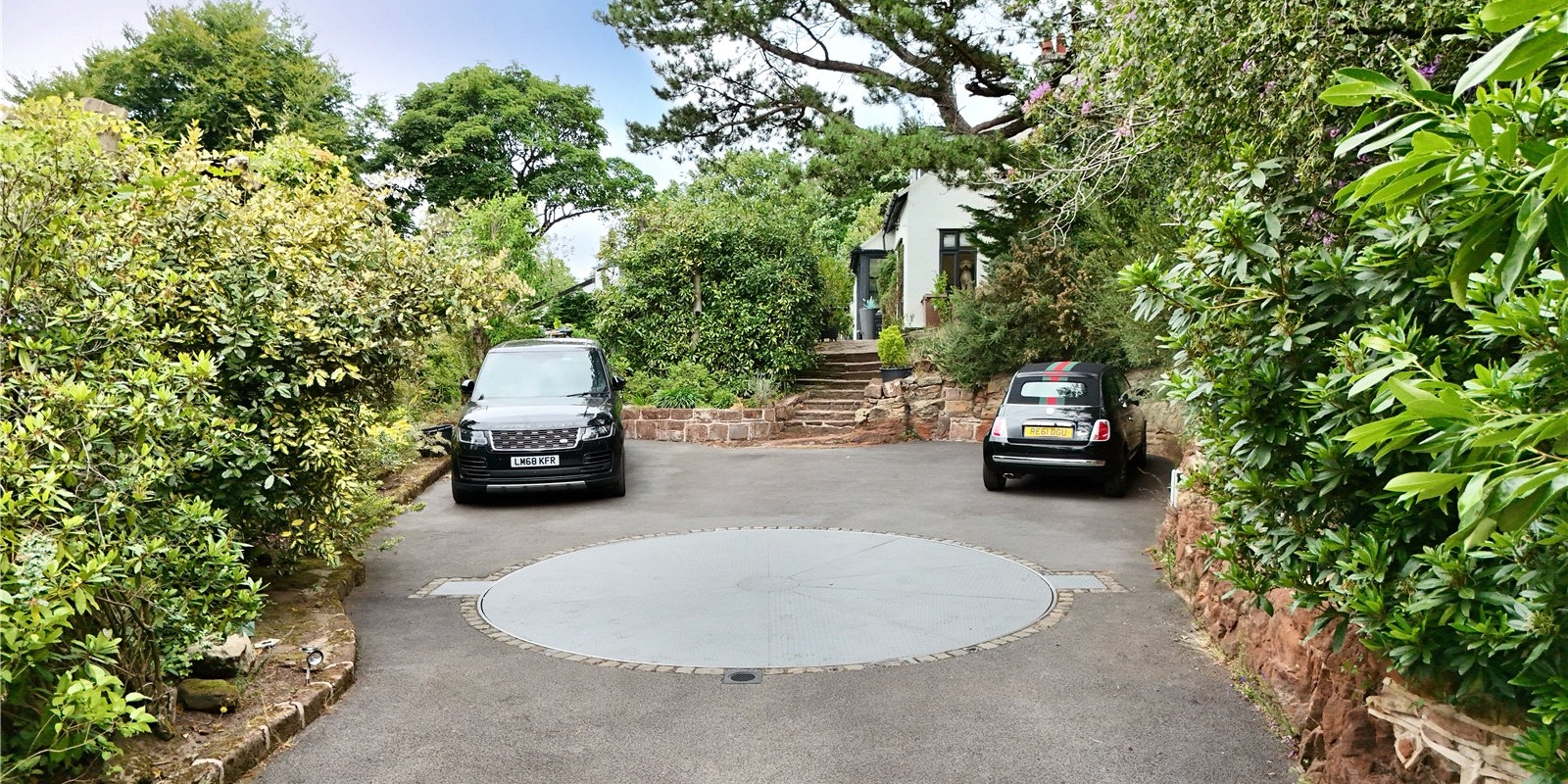 The secure gated driveway allows an abundance of off-road parking and benefits from a car turntable - a real show piece. A sandstone path guides you from the drive to the front porch.