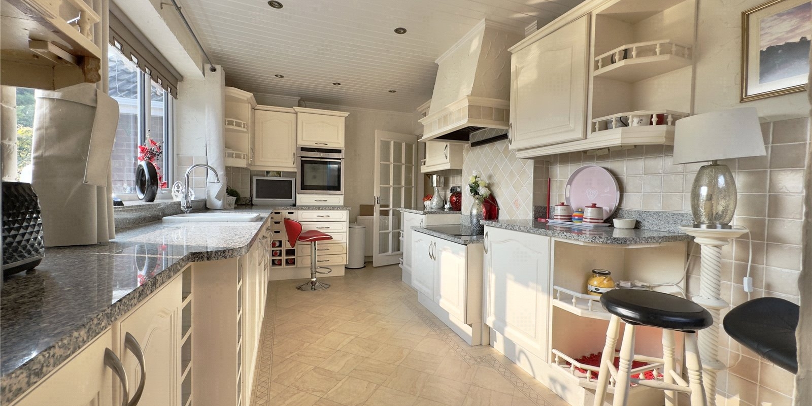 The bungalow has been tastefully extended and designed to maximise the impact of the incredible views to the rear. The outlook is over your own private paddock. The extension offers an open plan Kitchen and Living area that looks out over this.