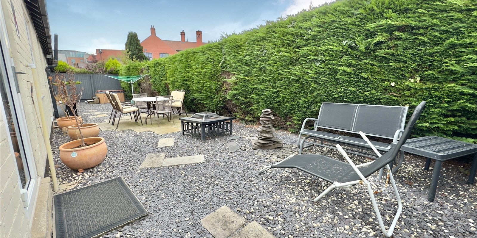 Outside, there is a driveway and a neatly maintained front lawn, along with a detached garage and a private, low-maintenance rear garden offering a peaceful outdoor space to relax in.