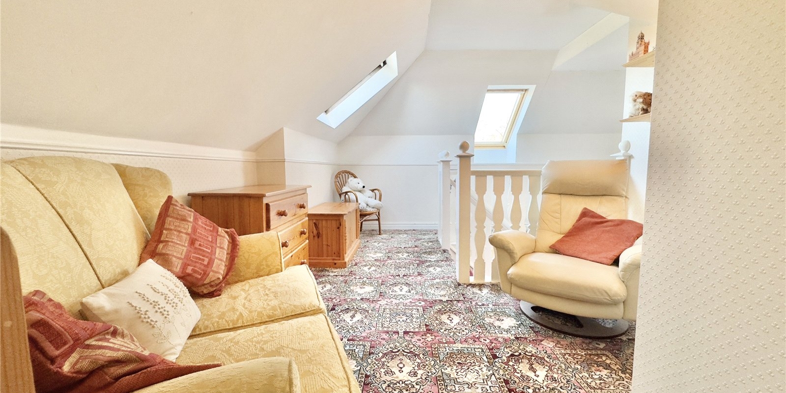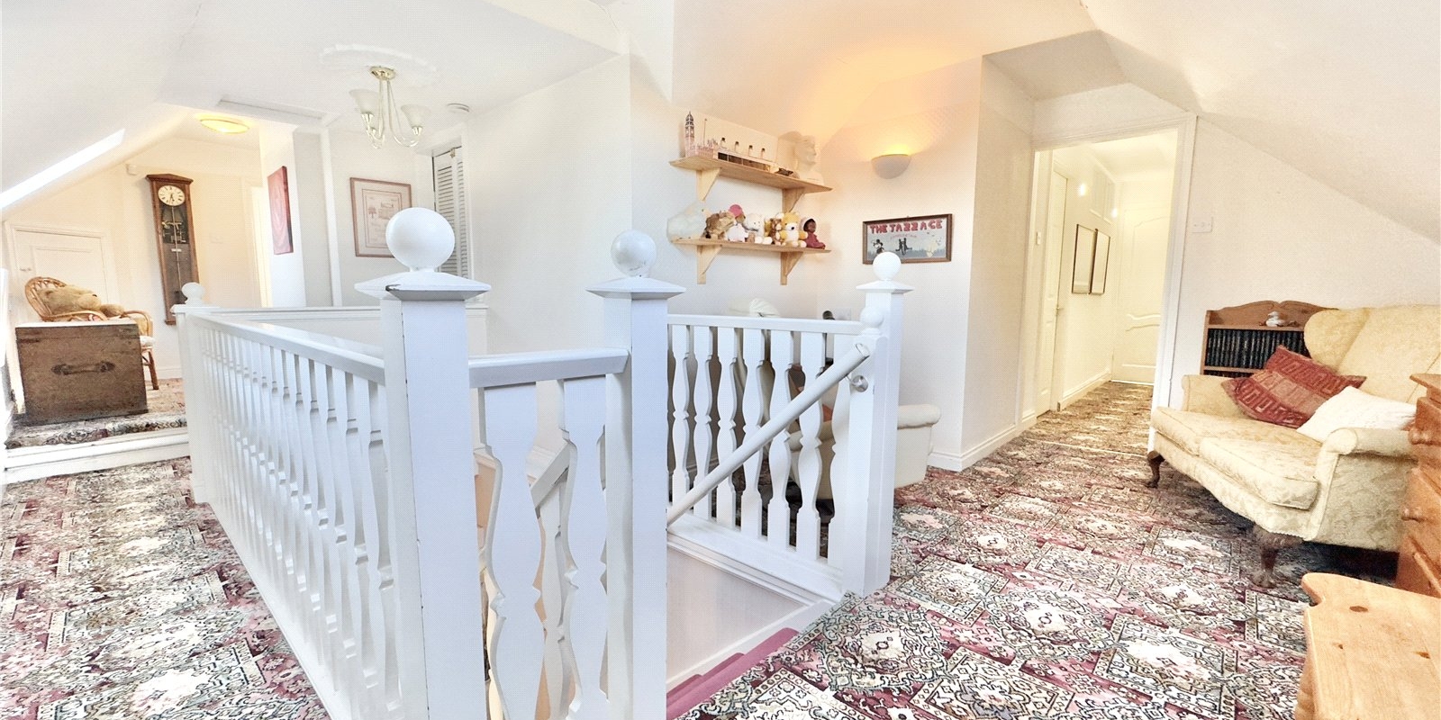 Upstairs, you’ll find three more generously sized bedrooms, two of which benefit from en suite access. A mezzanine area above the study offers potential for further customization, whether as a reading nook or office space. A separate WC completes this level.