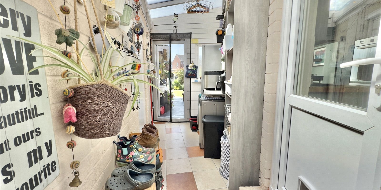 Upon entering, you’re welcomed by a spacious entrance porch leading into a generous hallway. The ground floor features a bright and airy lounge/diner, complete with a charming wood burner and sliding patio doors that open directly onto the sunny, landscaped rear garden. The modern kitchen/diner is thoughtfully designed, perfect for both everyday living and entertaining. Just off the kitchen is an outdoor utility room that conveniently connects the main house to the garage.