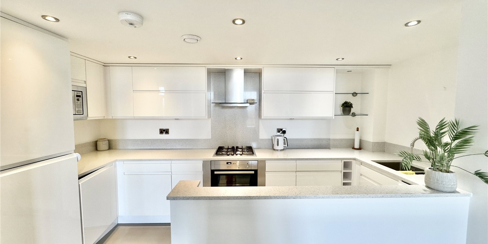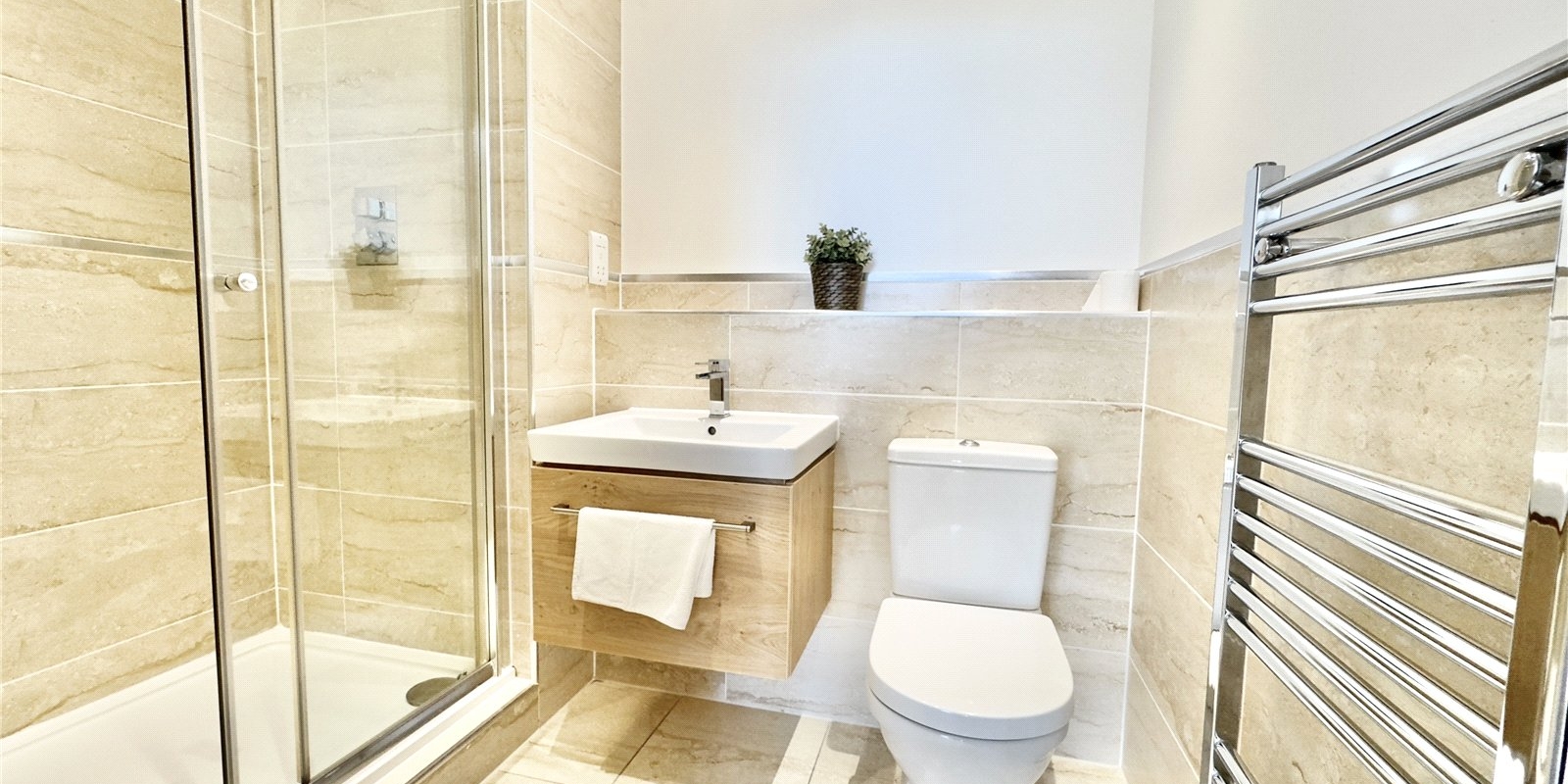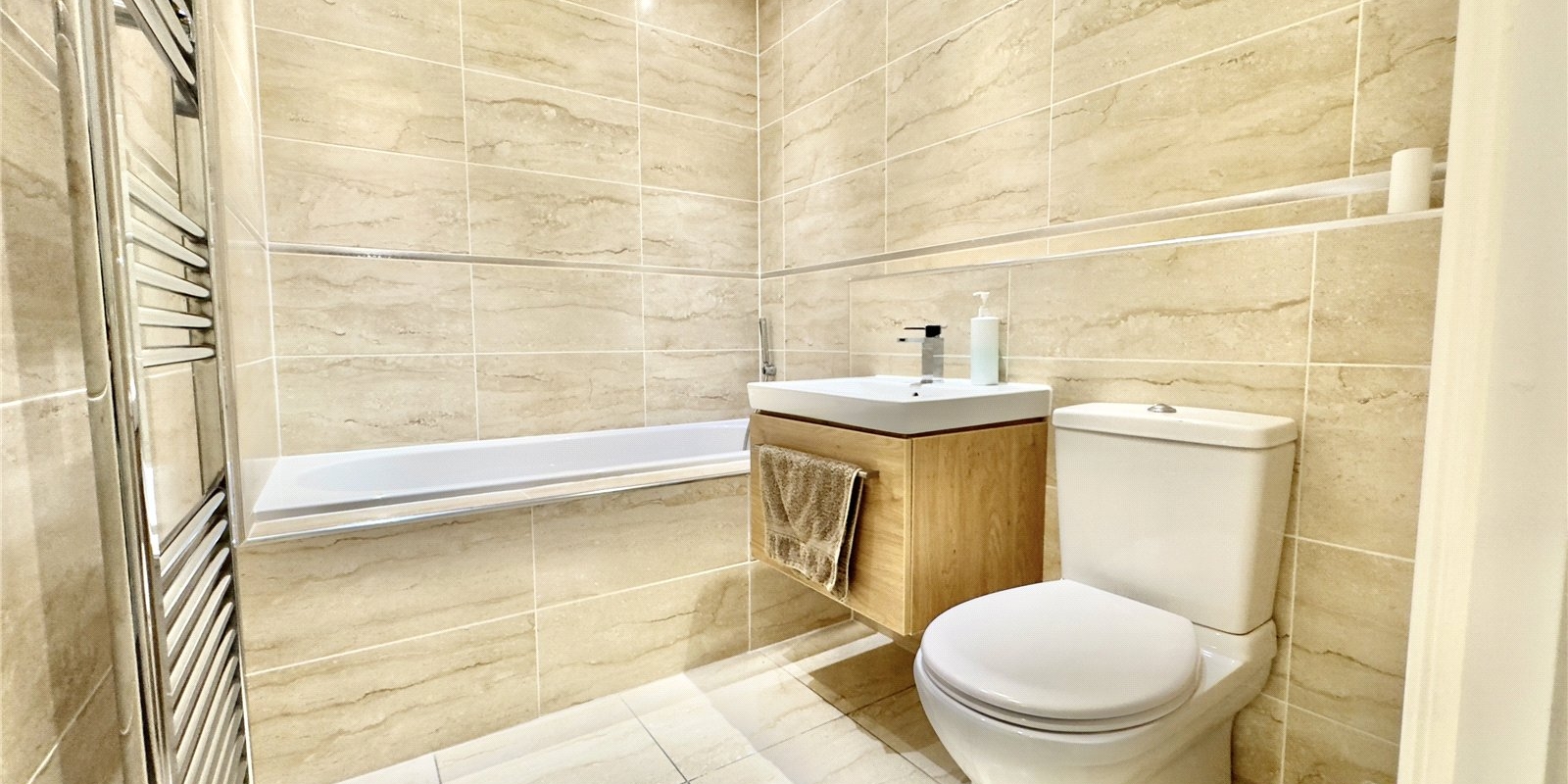 The master bedroom benefits from a modern en-suite shower room, while both double bedrooms offer ample built-in wardrobe space. The main bathroom is contemporary in design and finished to a high standard. Externally, the property further benefits from two allocated parking spaces.