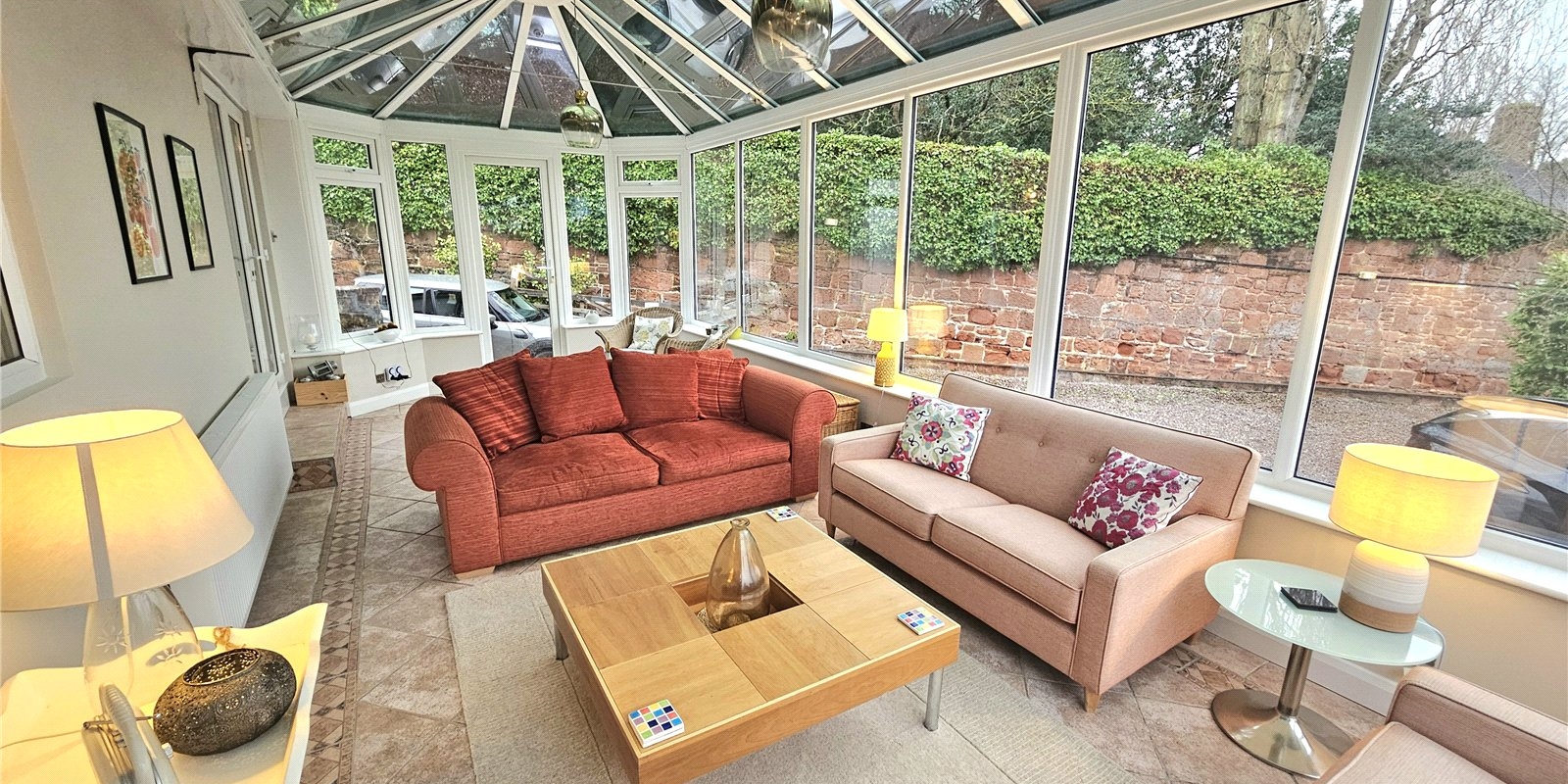 A well-presented dining room leads through French doors into a large conservatory, providing a lovely space to sit and enjoy views over the surrounding grounds. Off the dining room is the recently updated kitchen, fitted with sleek base and wall units, ample worktop space, and a selection of integrated appliances.
