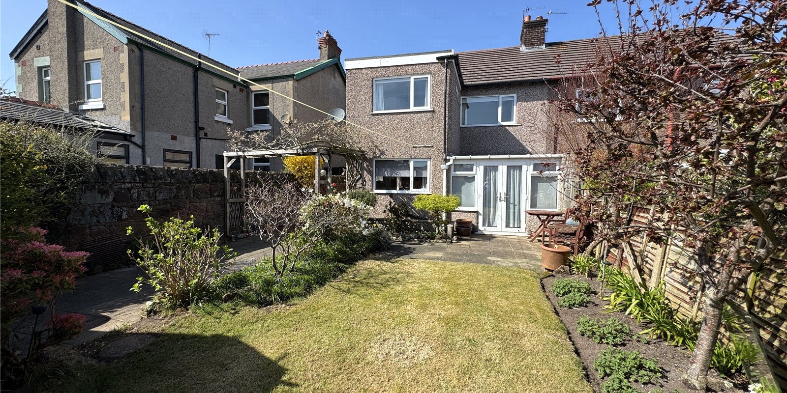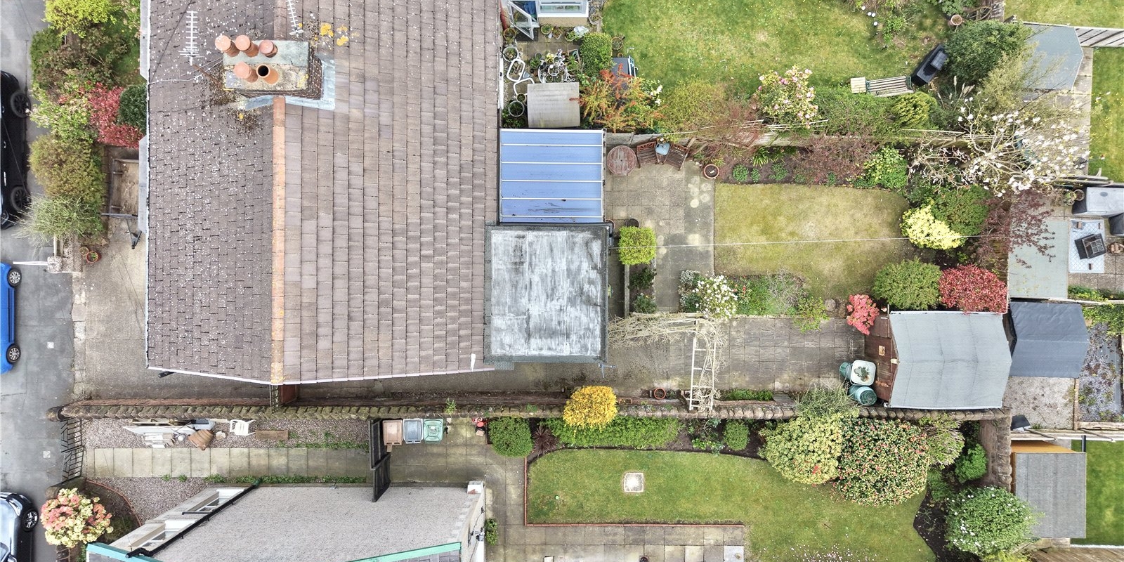 Externally, the property benefits from a private driveway providing off-road parking and a sunny rear garden, which is an ideal space for relaxation and outdoor entertaining. The garden currently features a combination of patio and lawned areas, offering both practicality and potential for landscaping, while the rear aspect provides pleasant views.