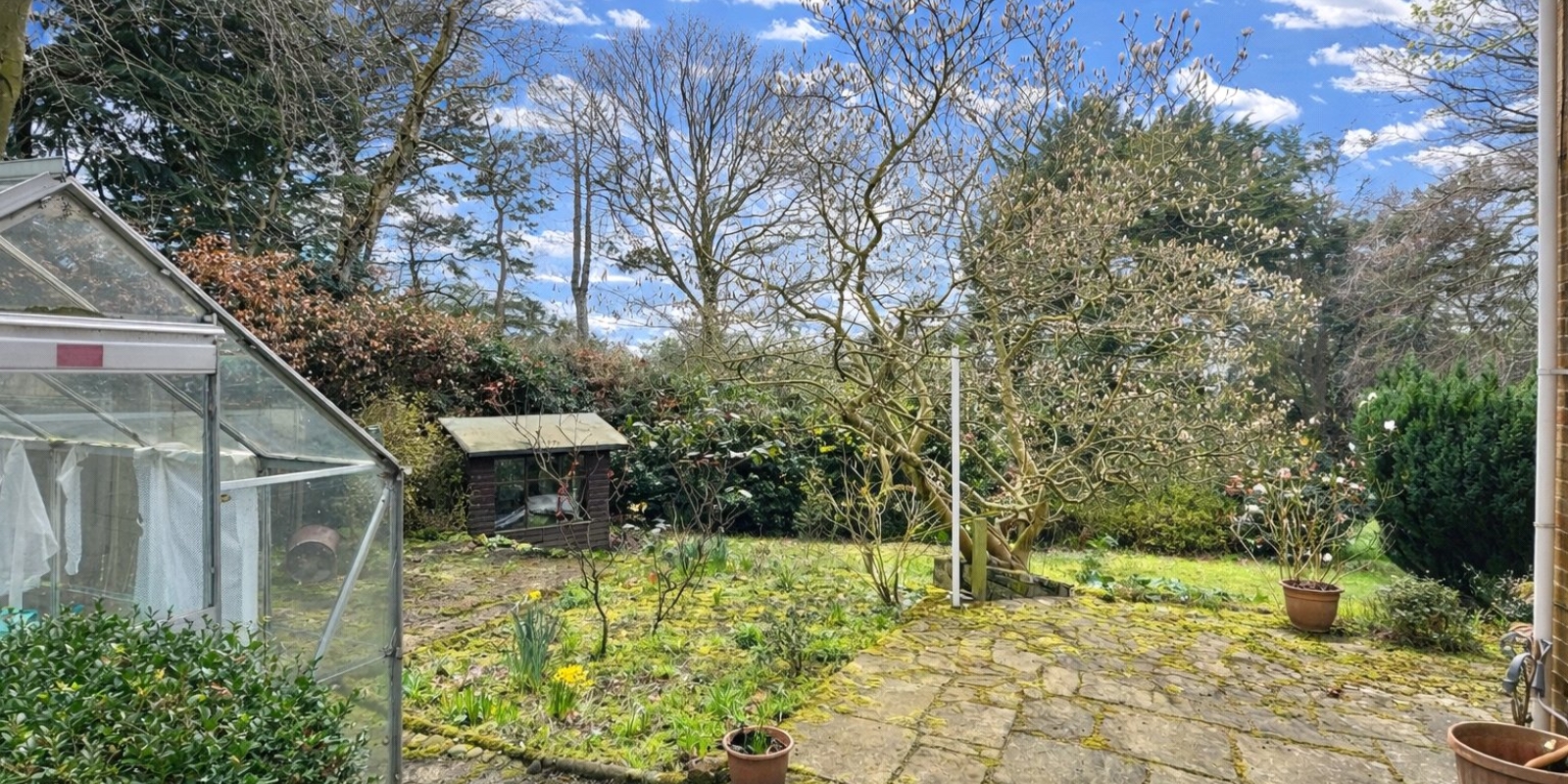 Externally, the property continues to impress. To the front, a gated driveway leads to a double garage, with mature trees and established shrubs creating a sense of privacy and seclusion from the main road. The rear garden is a particular highlight, offering a large and beautifully maintained outdoor space. A patio area provides the perfect spot for outdoor dining or relaxing while taking in the elevated views, while the expansive lawn is bordered by mature planting, adding both character and privacy.